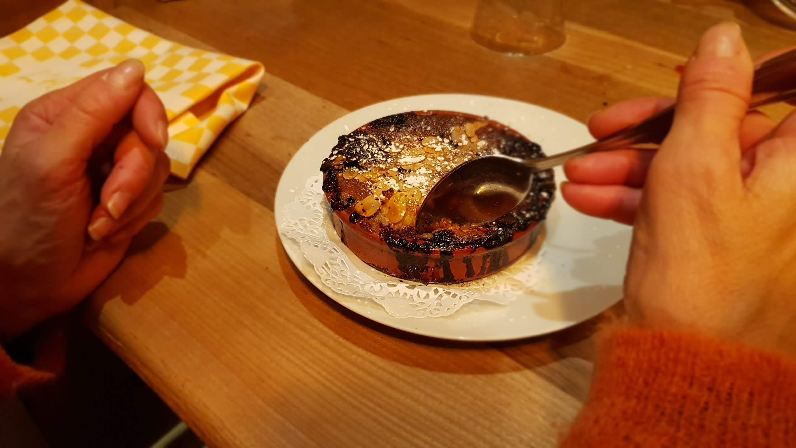 Un repas du midi avec un canard confit bien cuit et ses pommes de terre à la salardaise et comme dessert un chaud froid mirabelles que je conseille..(glace vanille, mirabelles poêlées et une crème chantilly le tout servi dans une verrine) Tarifs très abordable. Menu enfant. Accueil très agréable. Je recommande