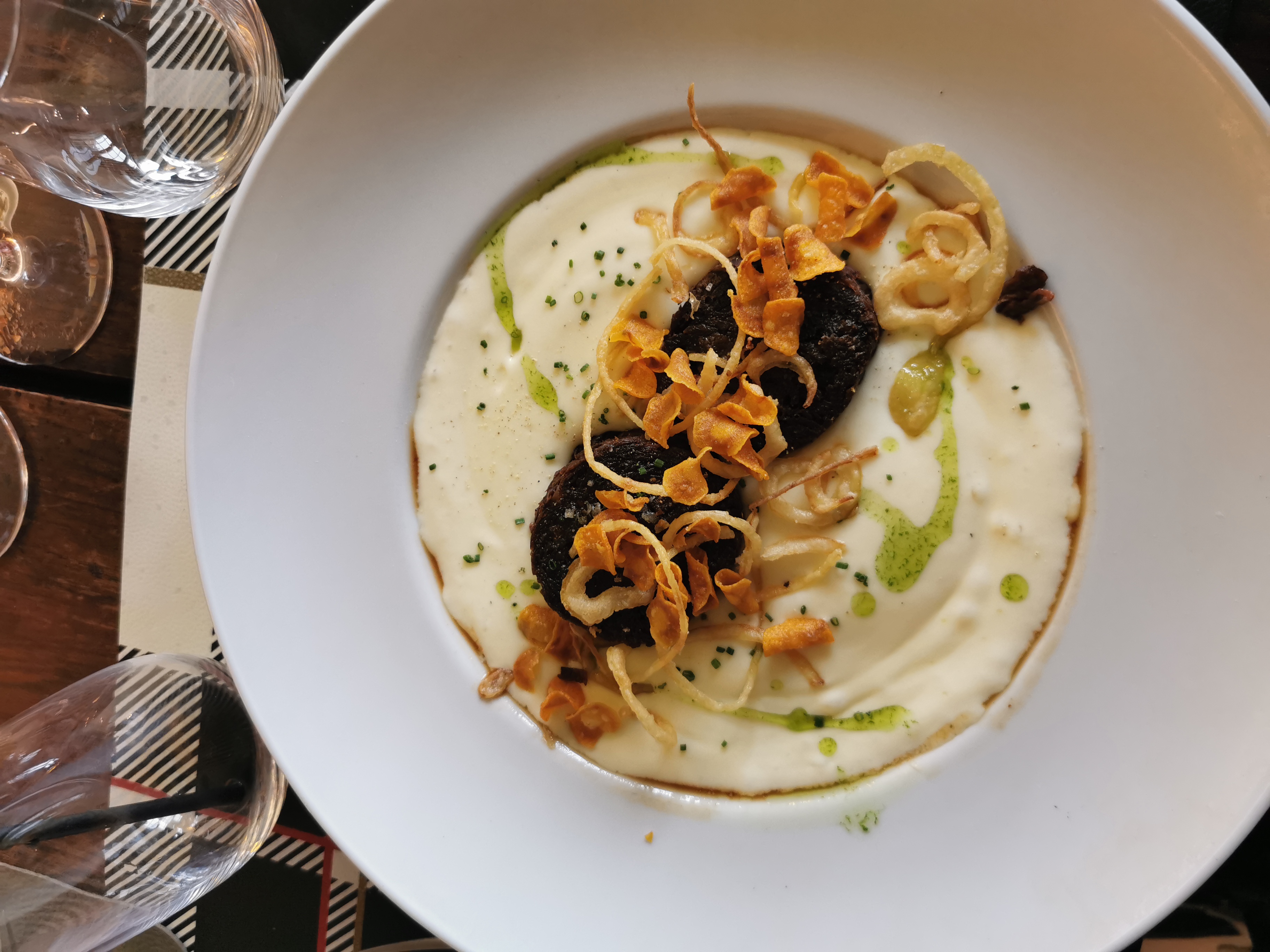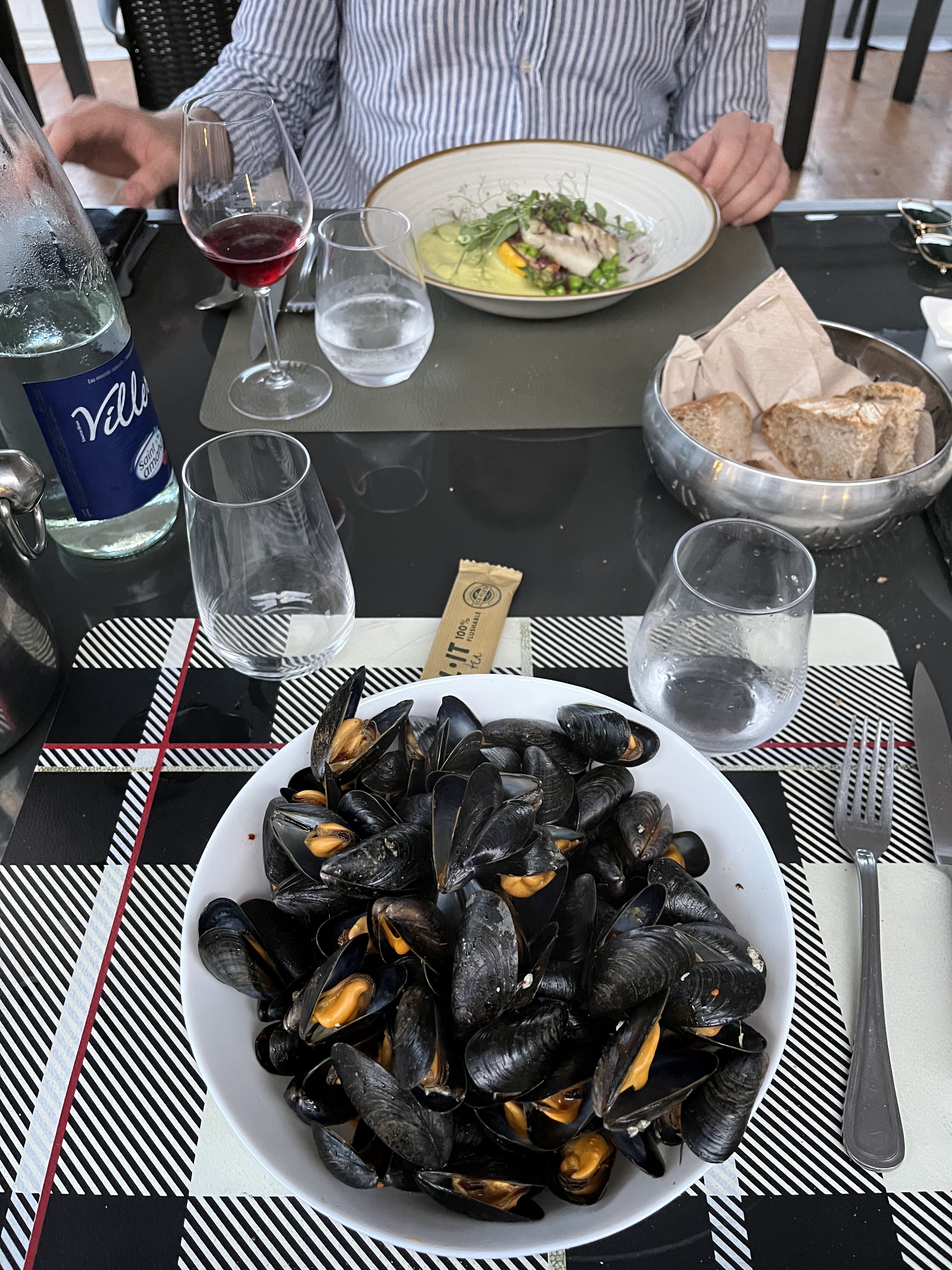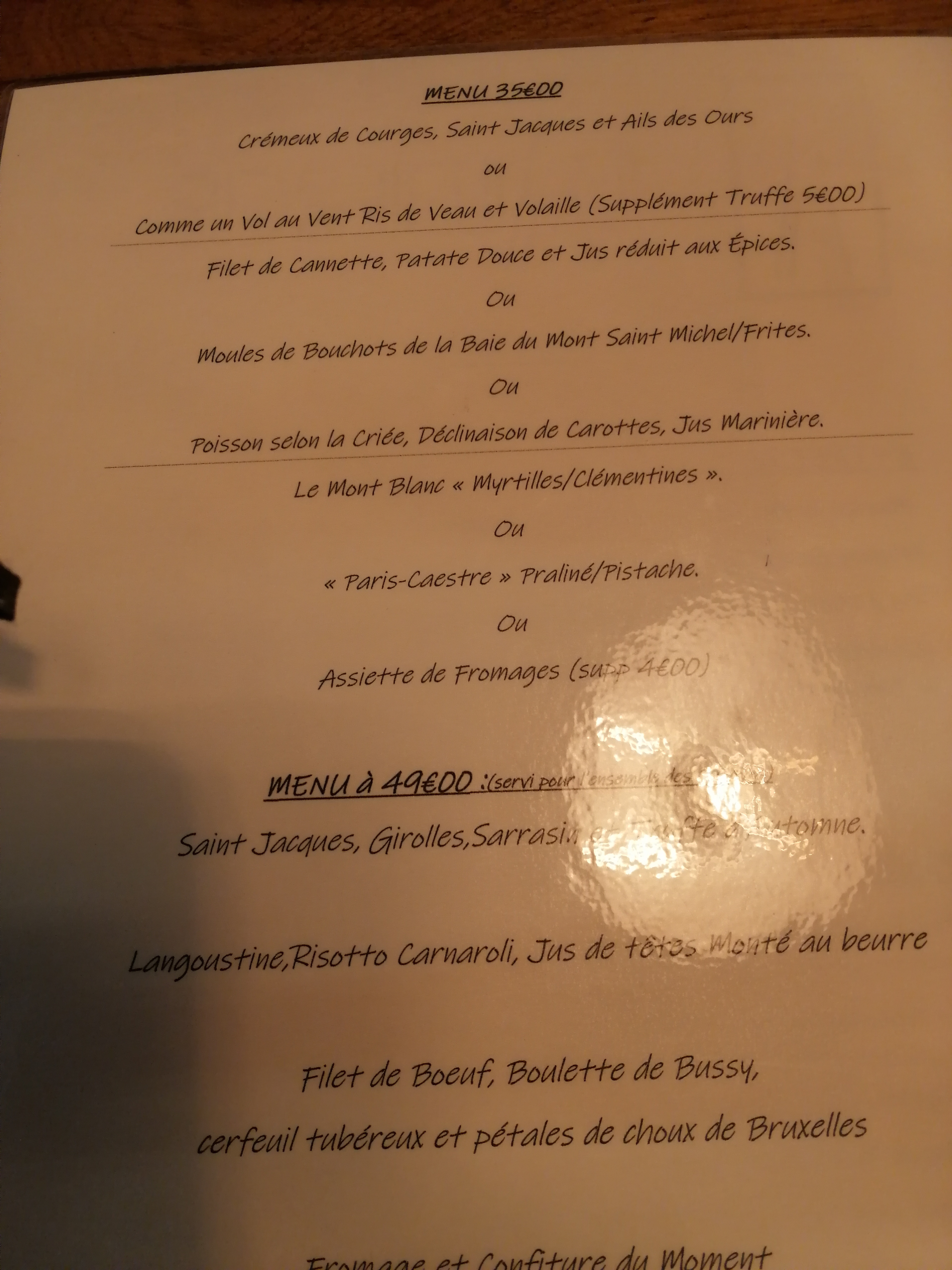 Quel bon moment nous avons passé à l’auberge !!! Antonin Maresciano y propose une cuisine classique qui tient au corps. Nous avons apprécié le Welsh, cette préparation typique du Nord inspirée du pays de Galles, à base d’œuf, jambon, pain, mousse de cheddar et bière, aussi un excellent os à moelle avec une belle salade créative. Ensuite une super poêlée de moules bouchots et pour Joe une assiette de Carbonnades de jours de bœuf au genévrier, succulentes ! En dessert un petit mille feuilles qu’on a partagé car les estomacs étaient bien pleins. En plus d’une jolie carte de cocktails, eaux de vie et autres alcools locaux et autres, la carte des vins est un carnet manuscrit fort amusant dans lequel Antonin ajoute, barre, ajoute etc en fonction de ses découvertes et envies. Un fort bel endroit empreint d’une belle vérité culinaire, une salle remplie d’un public principalement familial (normal un dimanche midi) en était la preuve. Miam !