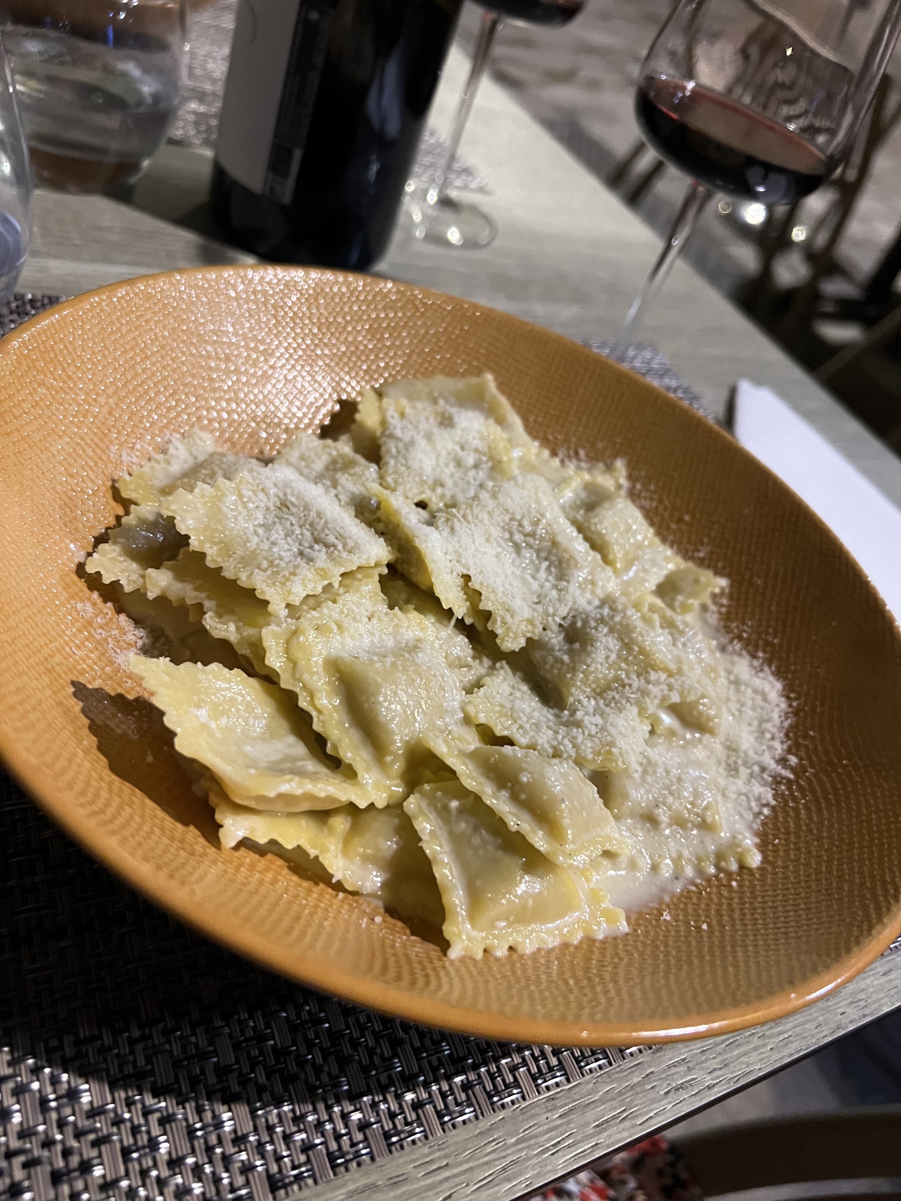 Très très déçu. On m’a recommandé les ravioles au fromage. 5 raviolis dans mon assiette et de la sauce tomate 25€, j’avais encore faim après. Pas d’eau pas de pain pour accompagner. Nul à éviter.