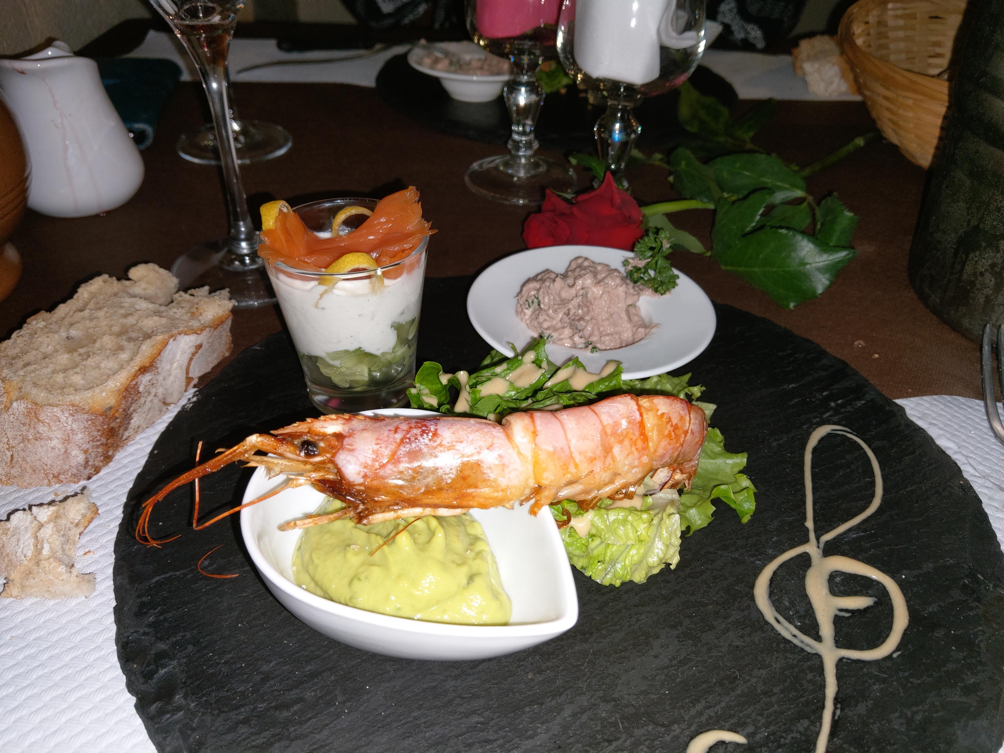 Apéritif sans amuse-gueule, accras brûlés, poulet avec dos de cuisse de mauvaise qualité, épaule d'agneau vendue comme souris d'agneau, gratin dauphinois médiocre. Manger des surgelés en auberge sans préparation maison ne vaut pas le déplacement.