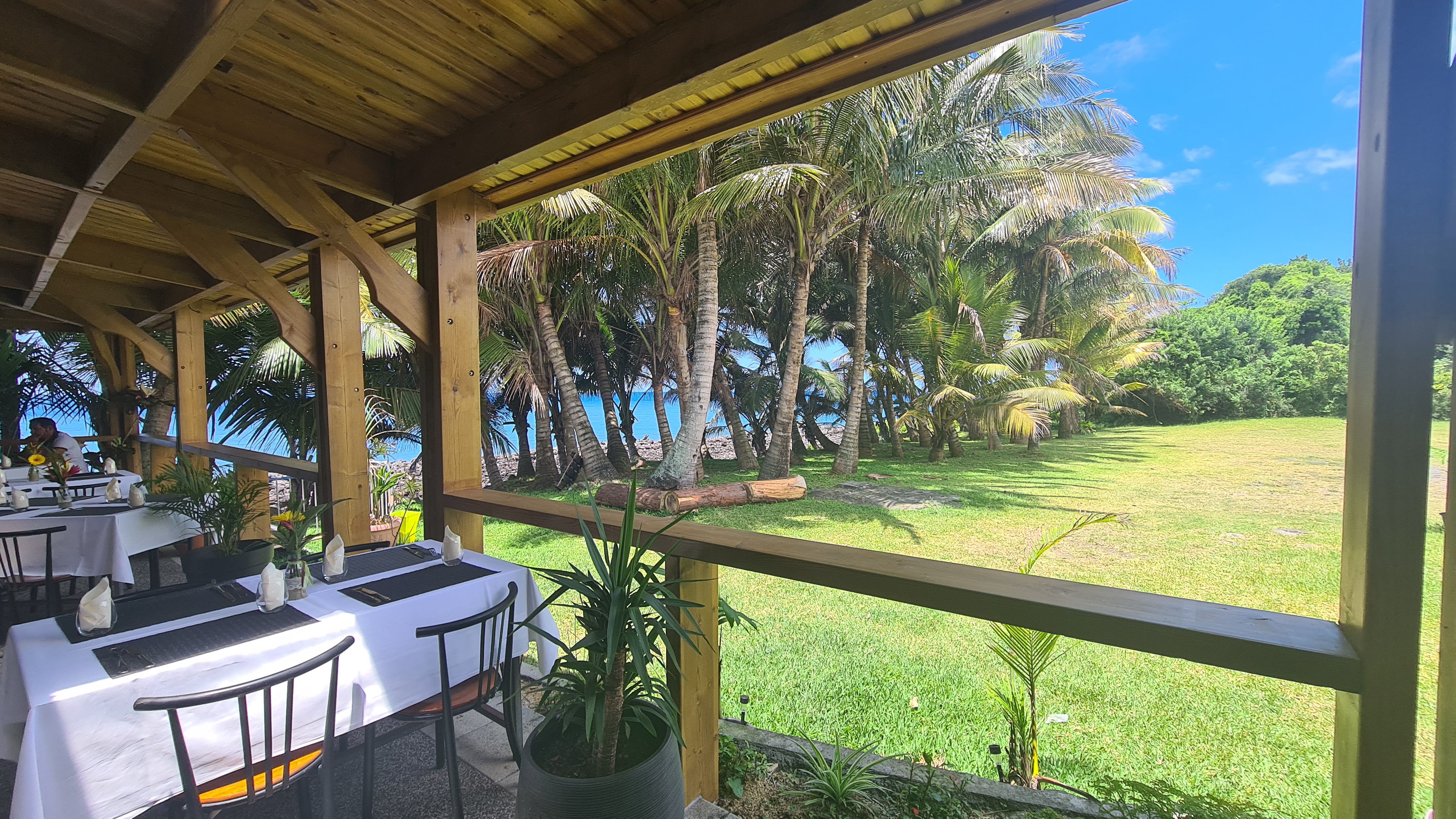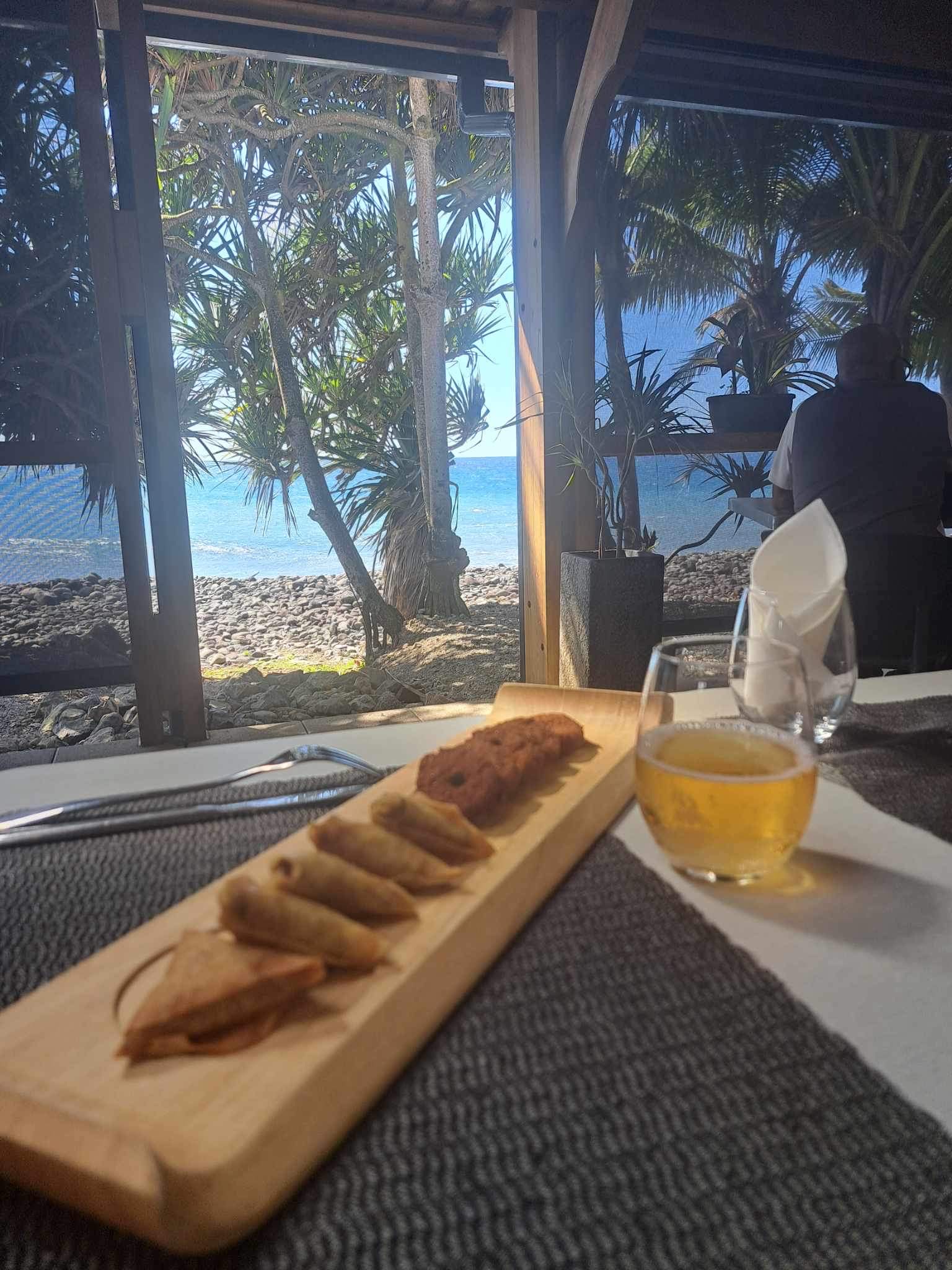 Une terrasse au bord de l'océan, une équipe extrêmement sympathique, une cuisine parfaite, créole ou métropolitaine, un rapport qualité prix parfait et de chouettes cocktails, bref un de ces lieux qui deviennent vite un rendez-vous régulier surtout qu'il est le seul dans la région Est. Pas d'entrées mais un accueil avec des samousas et des portions généreuses. Mentions spéciales pour le bar ou ladorade entière et l'entrecôte ! D'excellents desserts et un original café gourmand créole. A noter, les pizzas à emporter le soir, une escale sympa pour ceux qui vont voir le volcan de éruption !