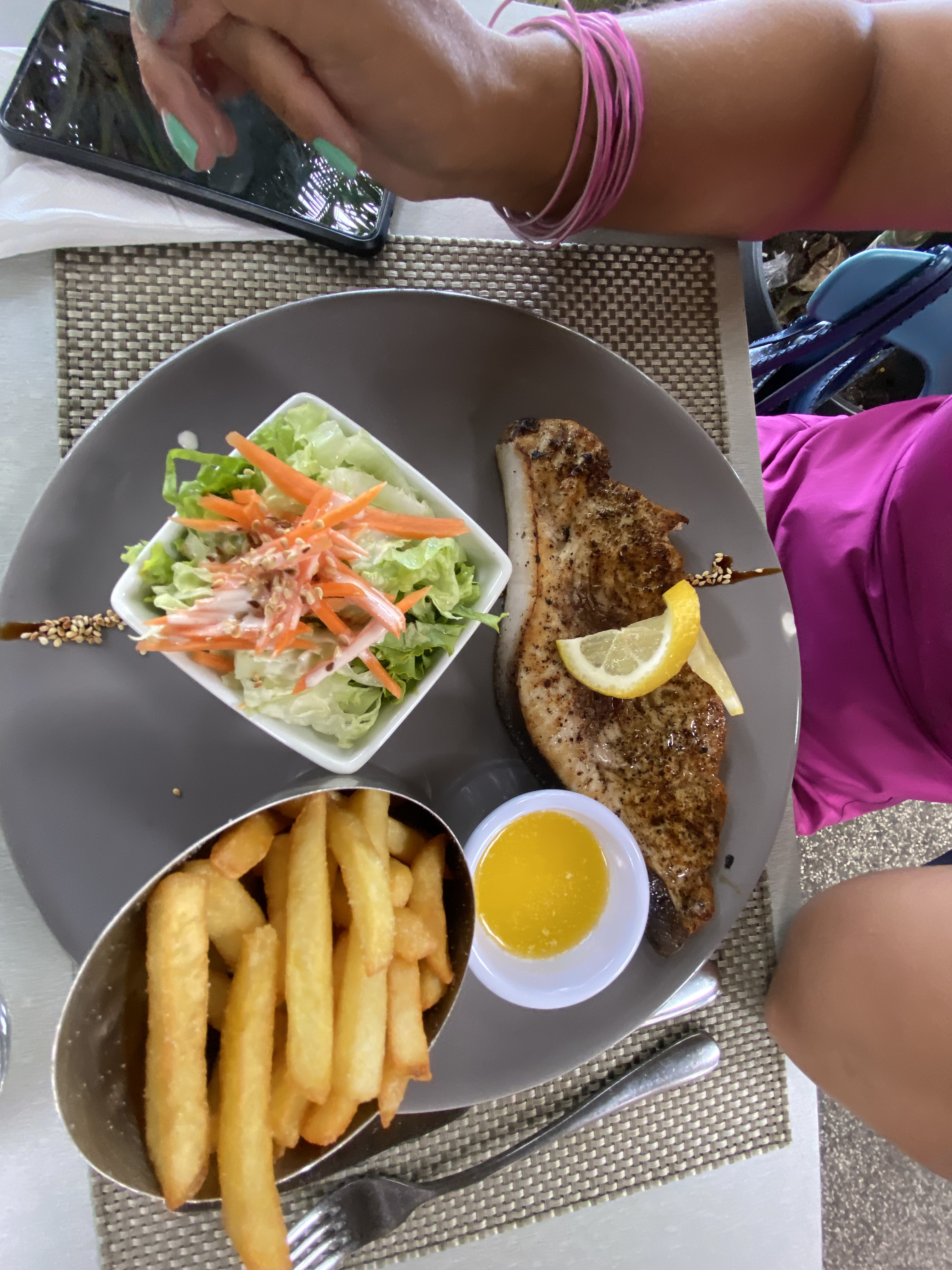 Repas merveilleux et personnel d'attente fantastique. Nous avons mangé de délicieux poissons frais grillés et bu des cocktails🍹 - le dessert gourmand du café créole était super aussi !