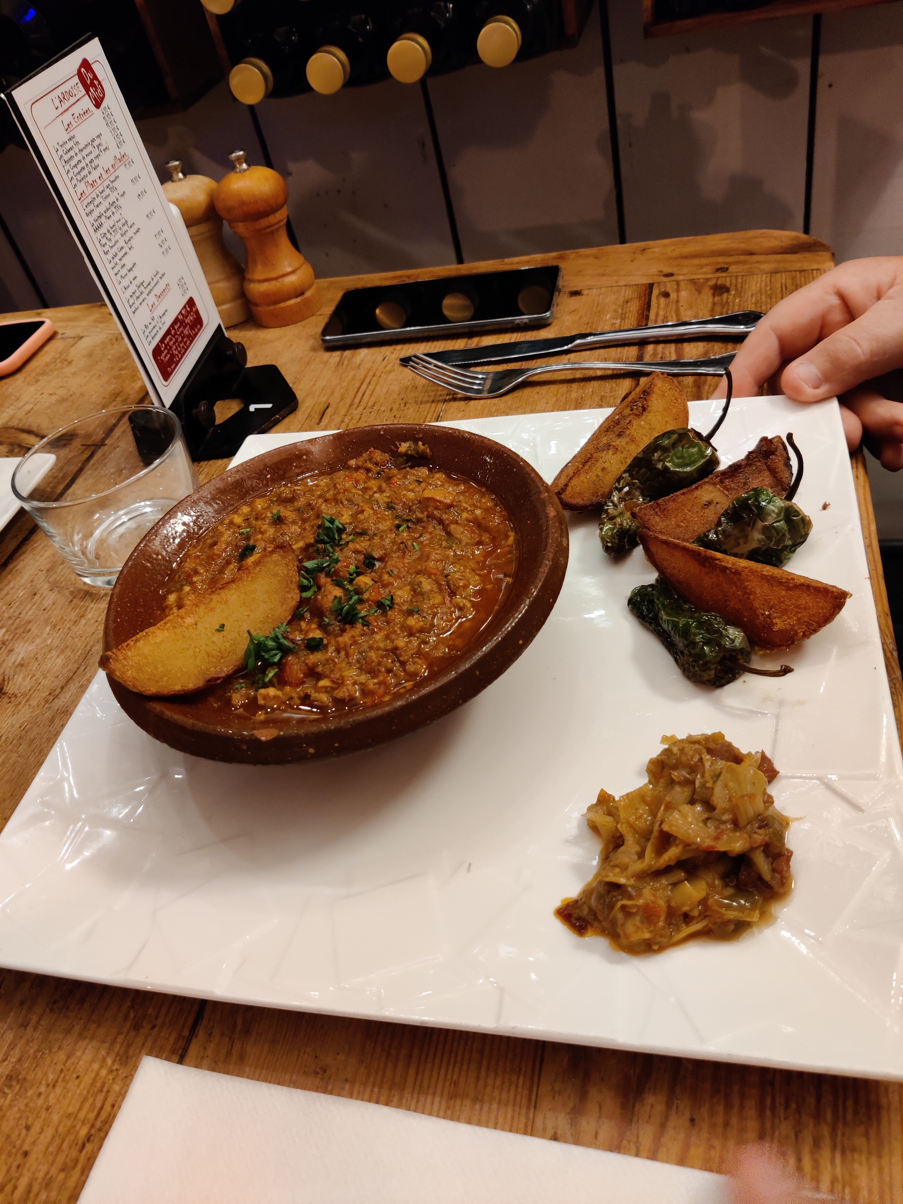Accueil au top, cadre super agréable ( du moins en extérieur). Bonne adresse pour tapas afin de passer un bon moment entre amis ou famille. Pas mal de choix ( entrées plats dessert.) Possibilité de prendre un menu avec entrée plat dessert ou à la carte. Les plats sont copieux et délicieux. Plein de bonne saveurs, je recommande fortement cette adresse si vous passez dans le coin !