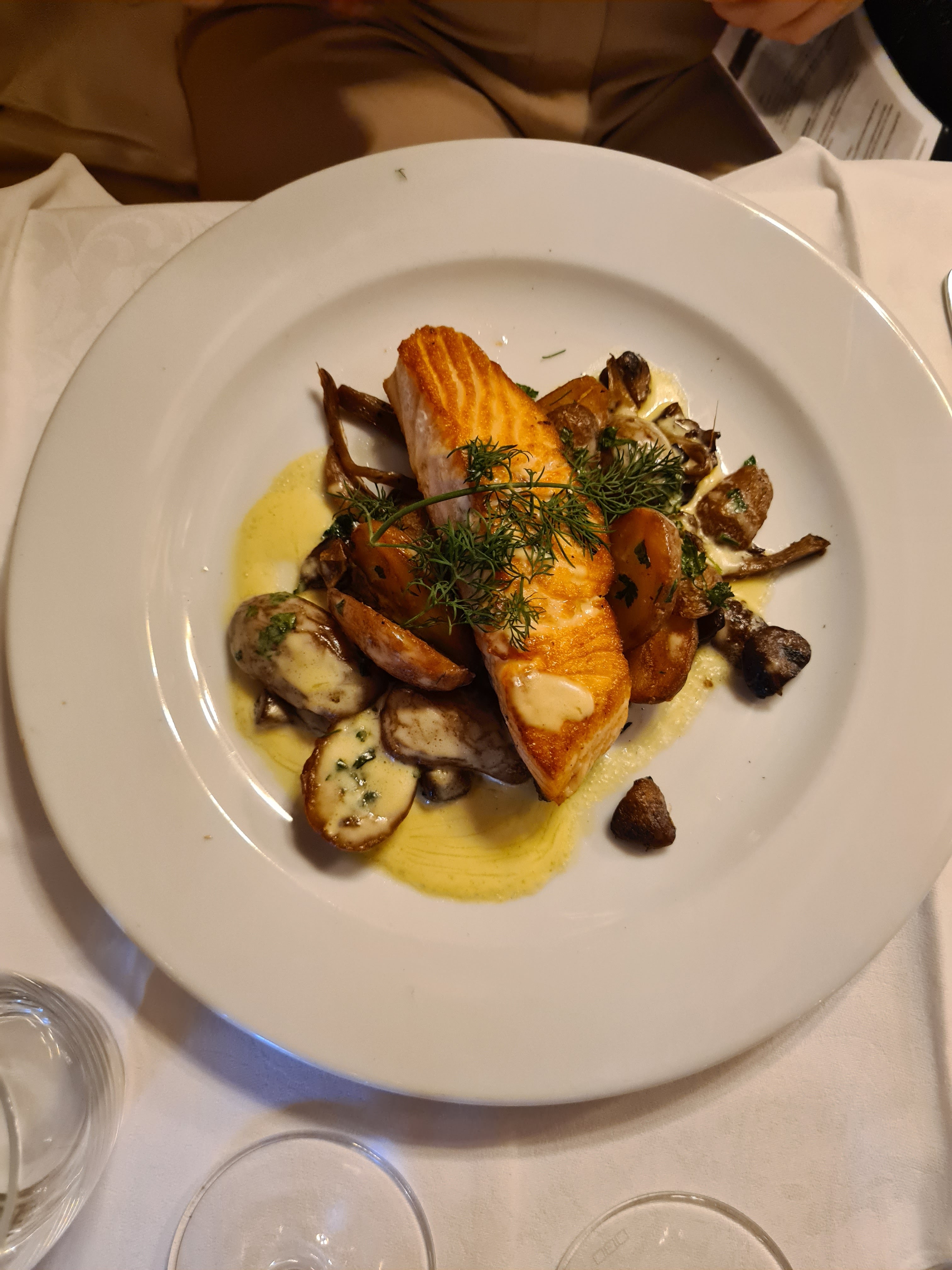 Positionnés sur une table, semble t il ajoutée à la va-vite pour faire face à l'affluence et bien qu'ayant réservé, dans un bruit continu, nous n'avons pas pu profiter normalement de ce bel endroit qui fût mieux tenu par le passé. Le service reste très pro. Le déjeuner club à 39 euros est simple et très correct pour le prix.
