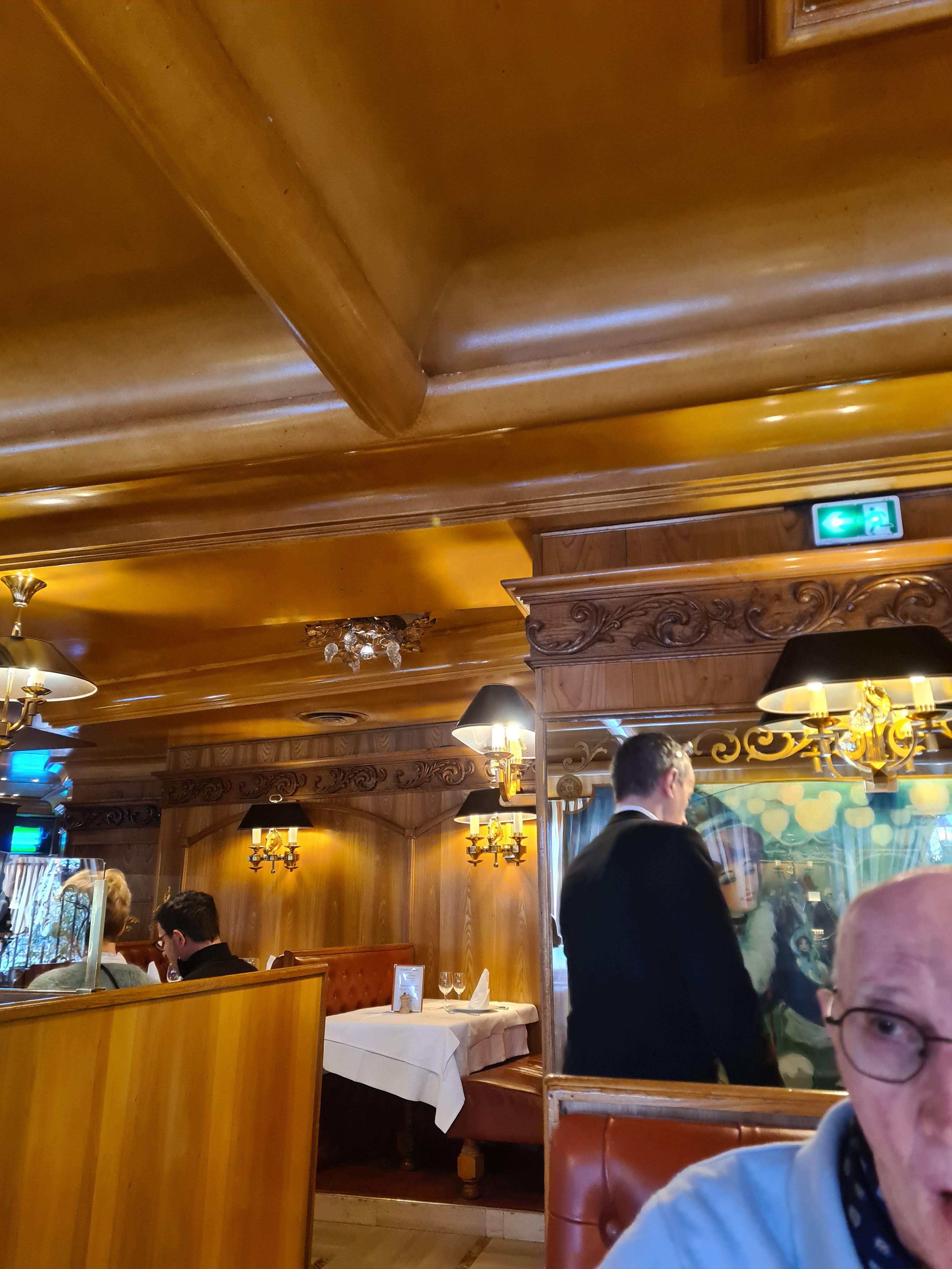 Une institution la classe un décor magnifique et oui c’est une des très grandes et bonnes brasseries sur Paris les classiques plats y sont servis et beaucoup y viennent pour le banc d’huîtres ou plateau de fruits de mer ( un peu cher)