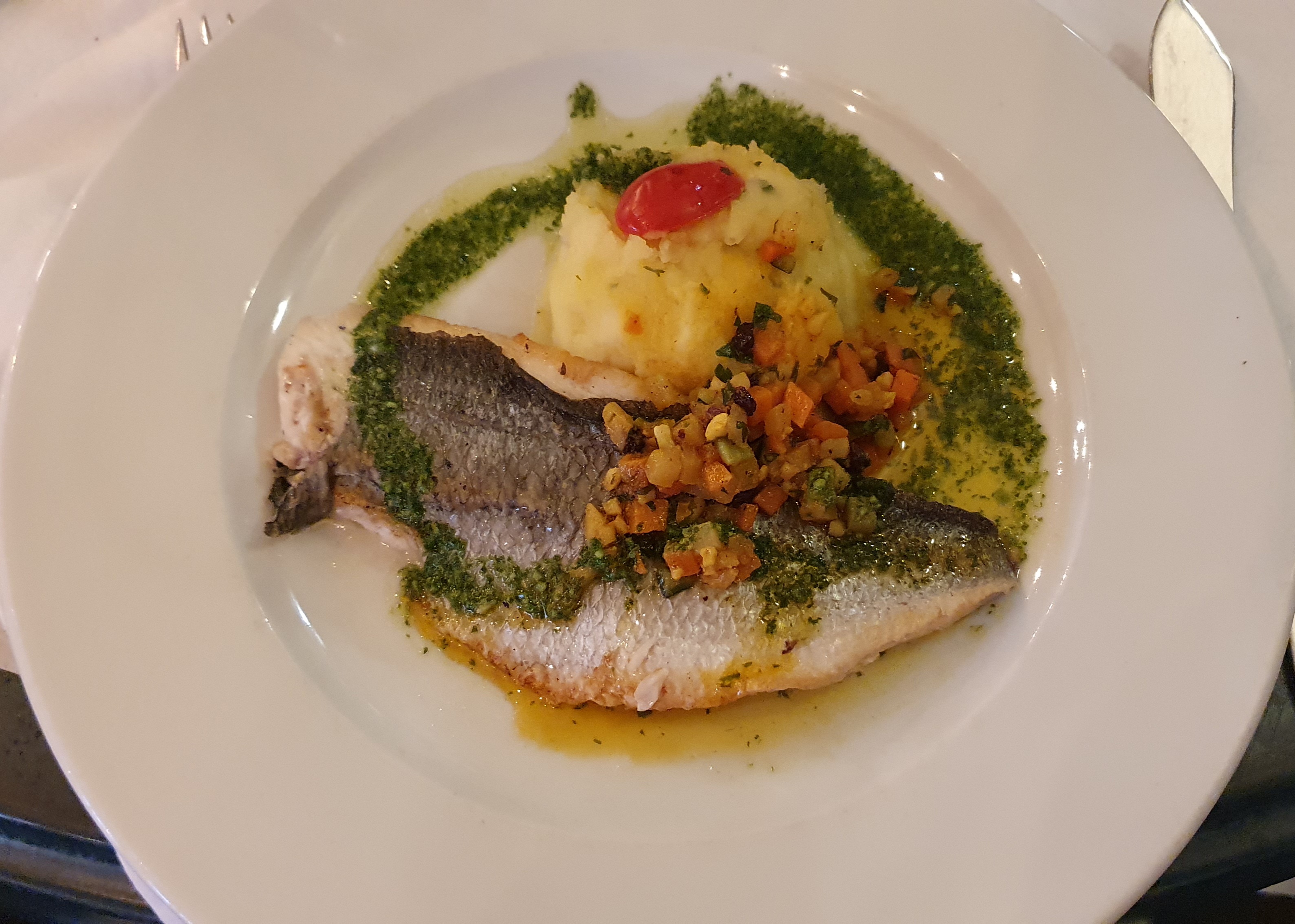 Le plat et dessert du jour: Daurade grillée et Millefeuille 🫶 un vrai régal ! Merci pour ce plaisir culinaire et le service qui était top !