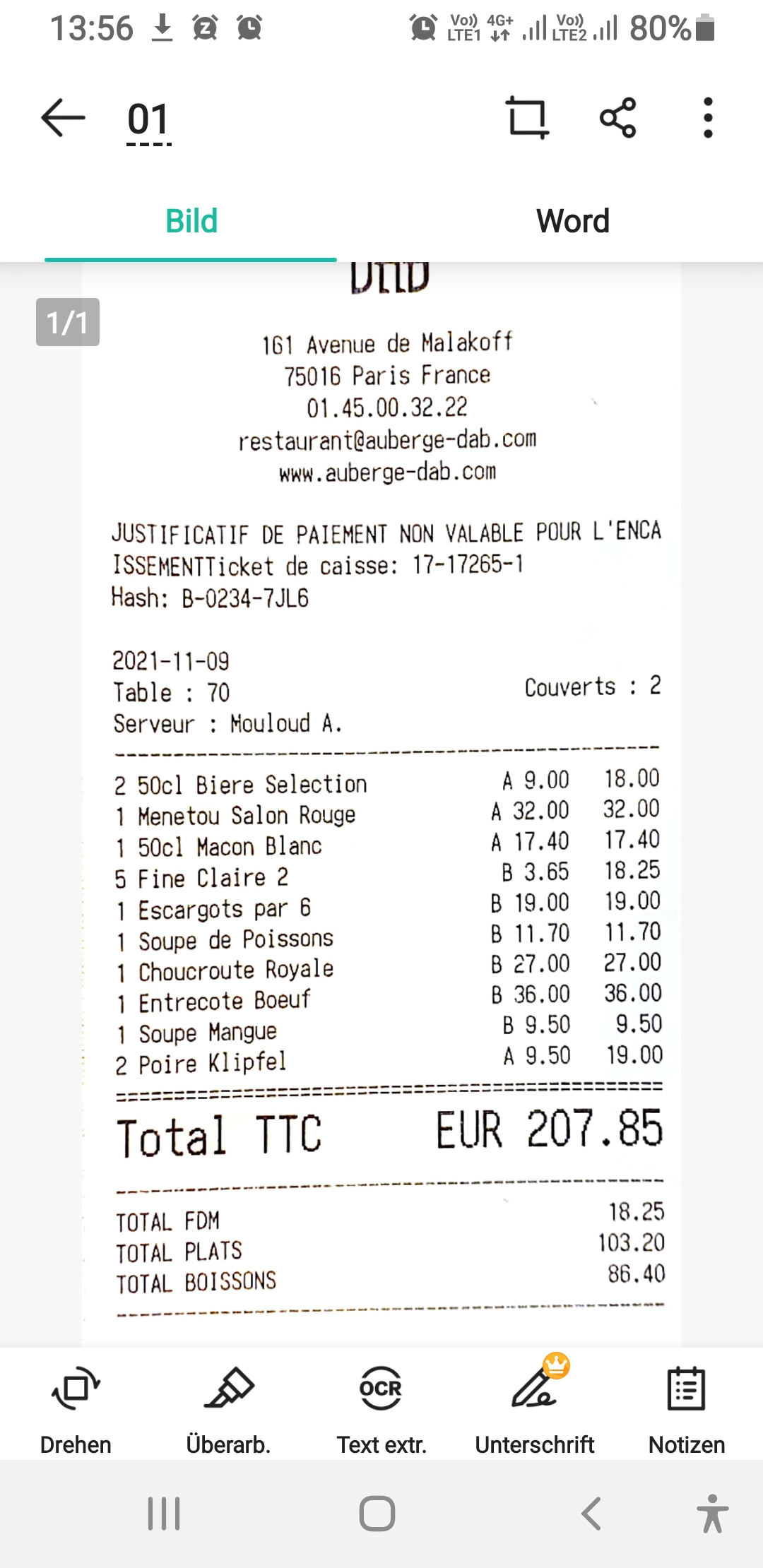 Bonsoir je reprends un précédent post de mon épouse concernant un litige voiturier. Nous avons eu une contravention à cause du voiturier il y a maintenant 2 mois et DAB nous ballade depuis le début en s'excusant, en disant qu'ils prenaient le problème en charge SAUF que la contravention n'est toujours pas payée malgré de multiples appels téléphoniques et emails. Aucun geste commercial de leur part non plus. Et donc je vais me déplacer en personne pour régler ce problème. La relation client est lamentable car vous payez un dîner, vous payez un voiturier et en retour vous vous prenez un PV ! Quelle honte. Comptez sur moi pour parler du restaurant et de ses pratiques à l'ensemble de mon réseau pro et perso.