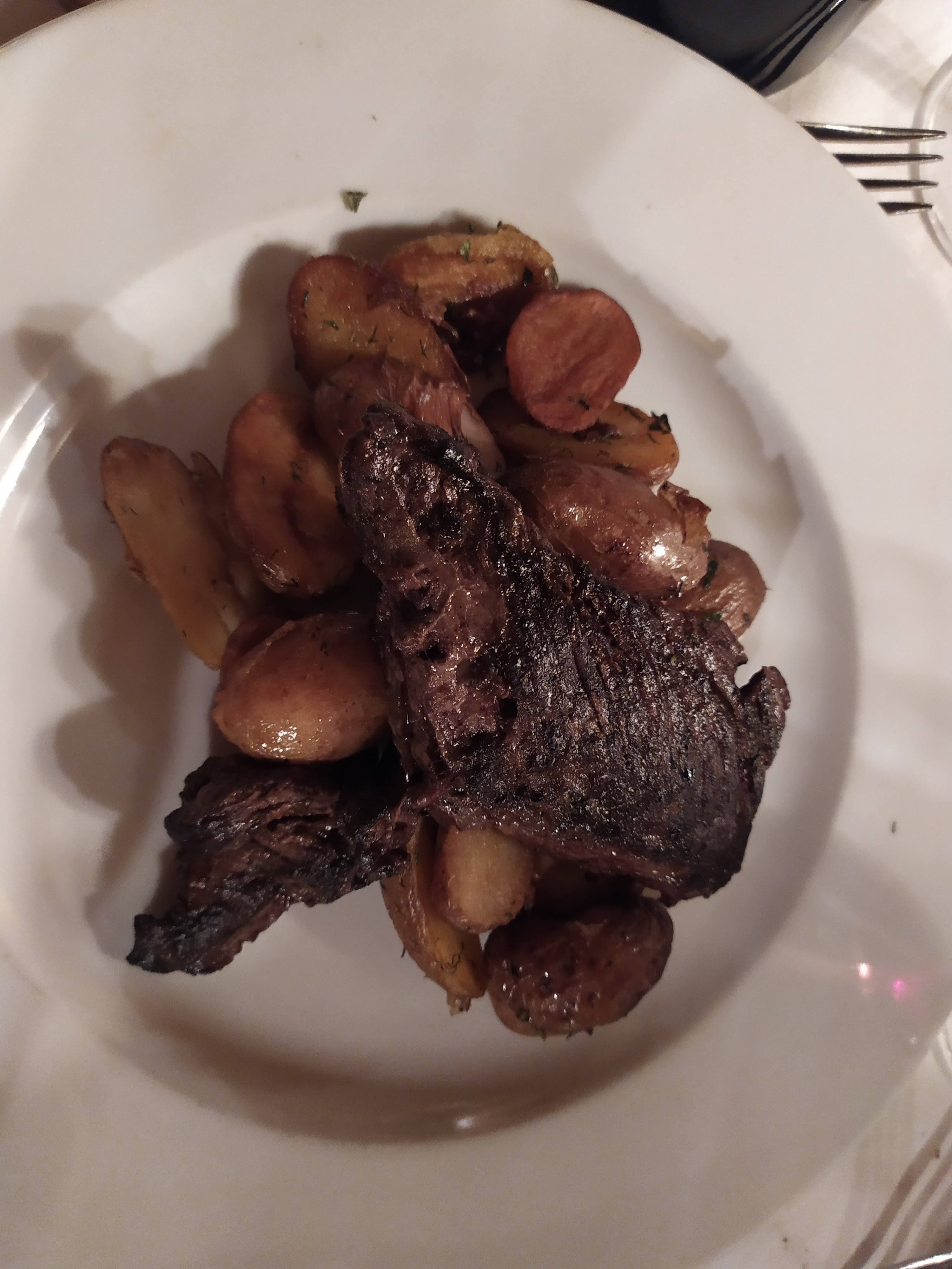 Nous avons commandé une assiette de dégustation de fruits de mer pour 1 personne, une bouteille de vin blanc, ce qui était étiqueté comme spécialité, du tartare et des joues de bœuf. Les fruits de mer sont frais et savoureux. En principe, c'était suffisant pour deux convives ; il n'était pas nécessaire de prendre d'autres plats. Le tartare était impossible à manger. Le tout au vinaigre, aigre. Les joues sont savoureuses mais trop simples (on ajoute des carottes et c'est tout). Le personnel est sympathique. Très probablement, nous reviendrions pour des fruits de mer.