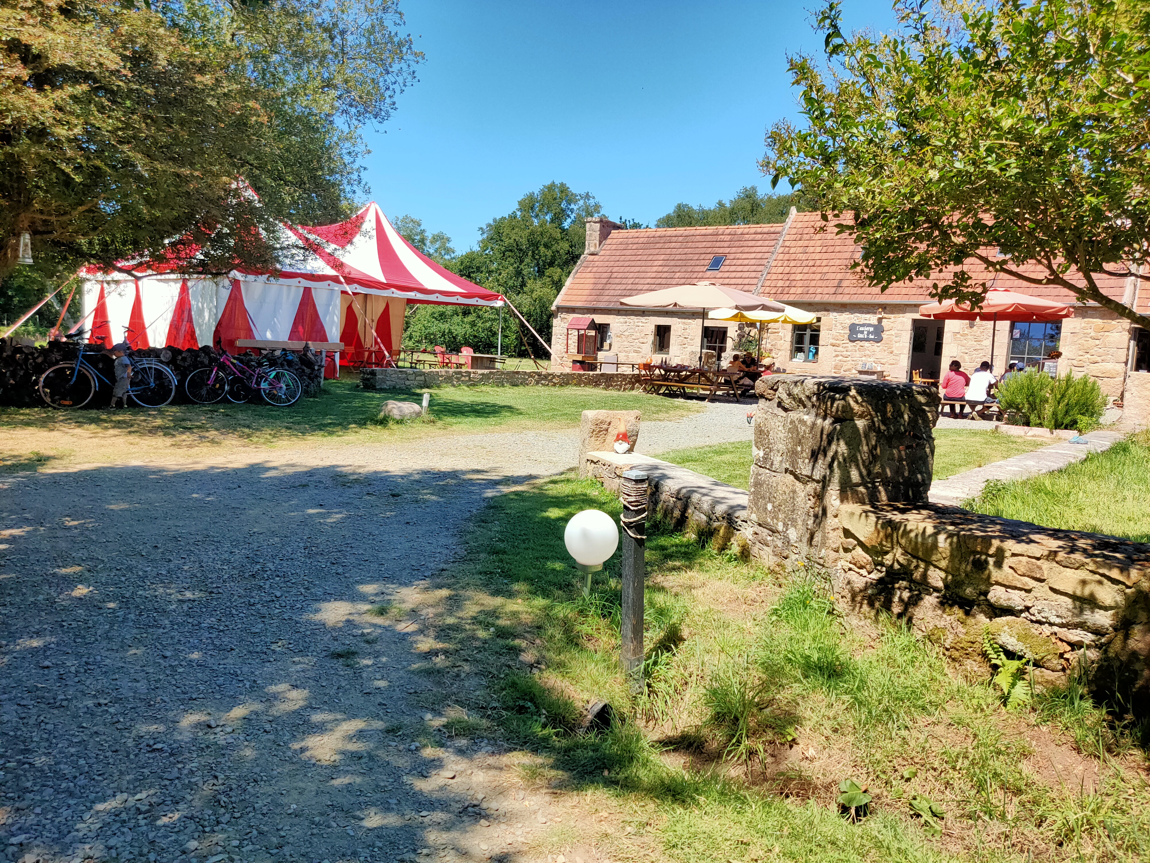 Un lieu simple et paisible où l'on mange très bien. Situé à deux pas du radôme, ambiance singulière entre un dôme futuriste en arrière-plan du paysage et la forêt bretonne de Pleumeur-Bodou. Lorsqu'il fait beau et que l'on peut déjeuner dehors, les enfants peuvent courir à loisir dans les prés sans danger et sans ennuyer les autres convives. C'est très agréable. Des concerts sont programmés mais il faut réserver en cette période de distanciation sanitaire.
