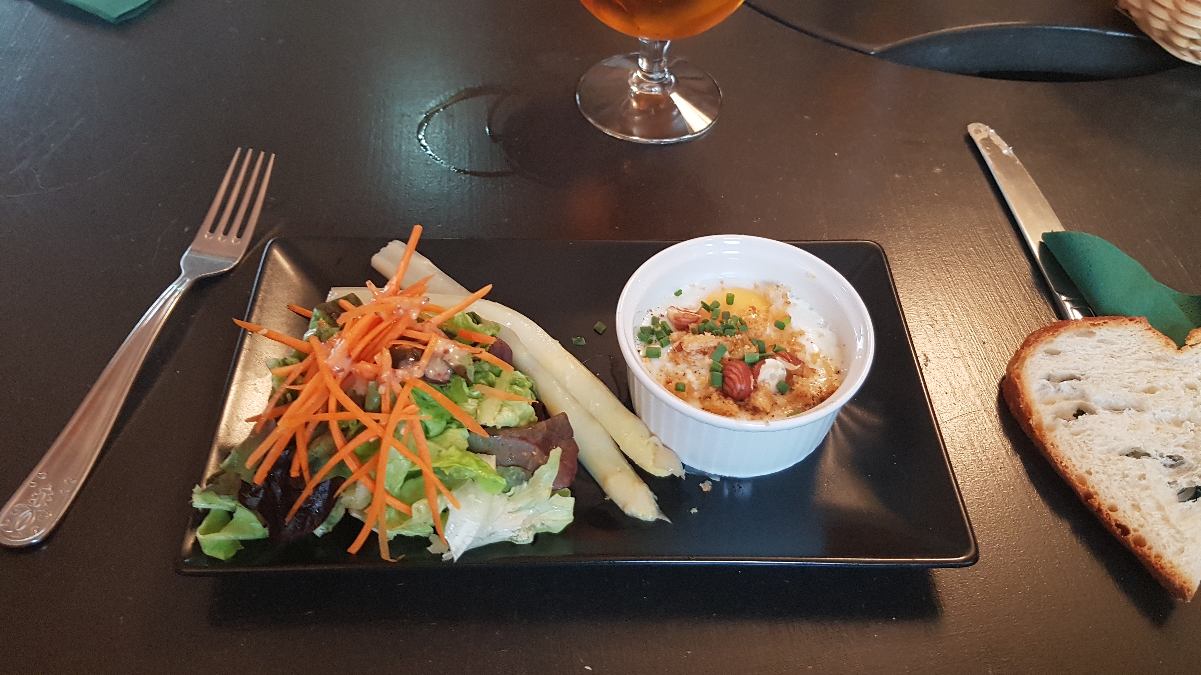 cadre nature, salle de restaurant a la deco tres eclectique,acceuil tres agreable et cuisine soignee qui sollicite autant l'odorat que le gout et la vue.D'evidence produits locaux.Bravo pour le jus de pomme fermier et la biere locale(il y a du choix en plus!).