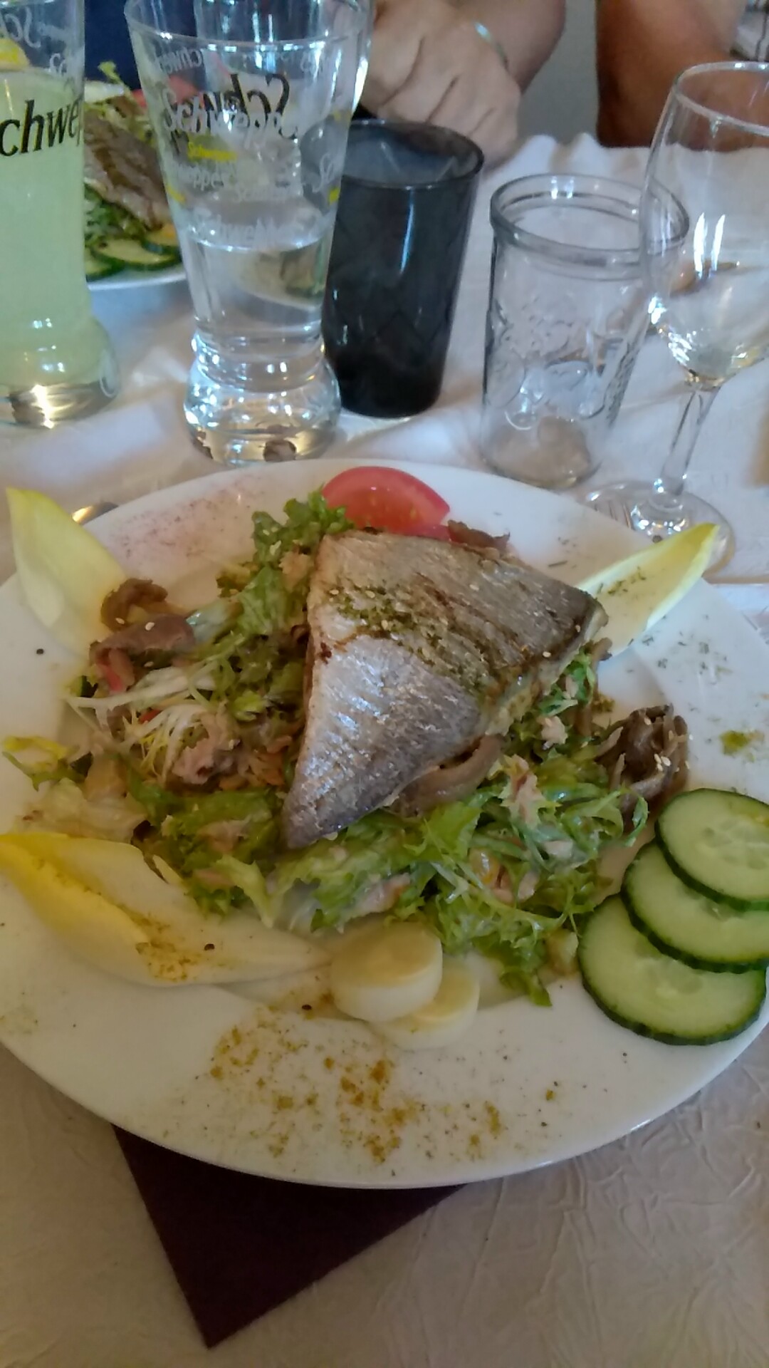 Nous y allons depuis plusieurs années et à chaque fois, nous nous régalons ! Des cordons-bleus divins, des pommes de terre rôties fabuleuses, des poissons toujours excellents (selon le moment... nage de poissons, sandre, bar, saumon à l'orange... ), du magret, des assiettes lorraines... et en été, les généreuses salades sont parfaites aussi ! Un seul supplice : devoir choisir ! Merci à toute l'équipe !