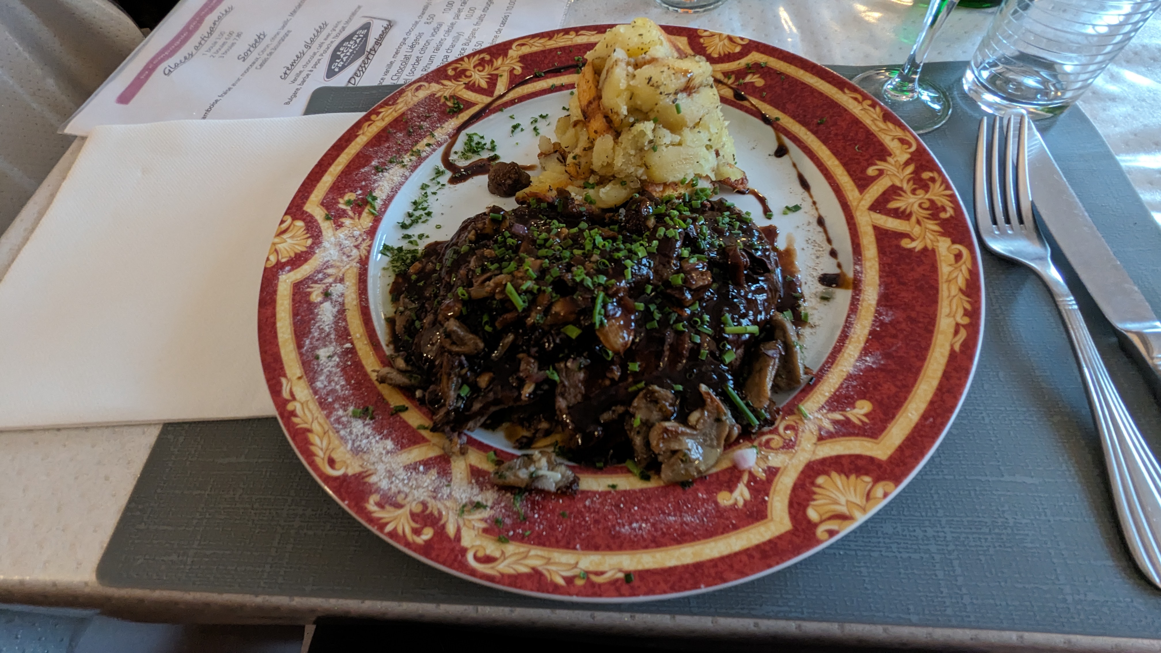 Parfait sur toute la ligne, une pièce de bœuf aux champignons absolument délicieuse, cuisson parfaite, et un dessert aussi beau qu'excellent. Nous reviendrons c'est certain !
