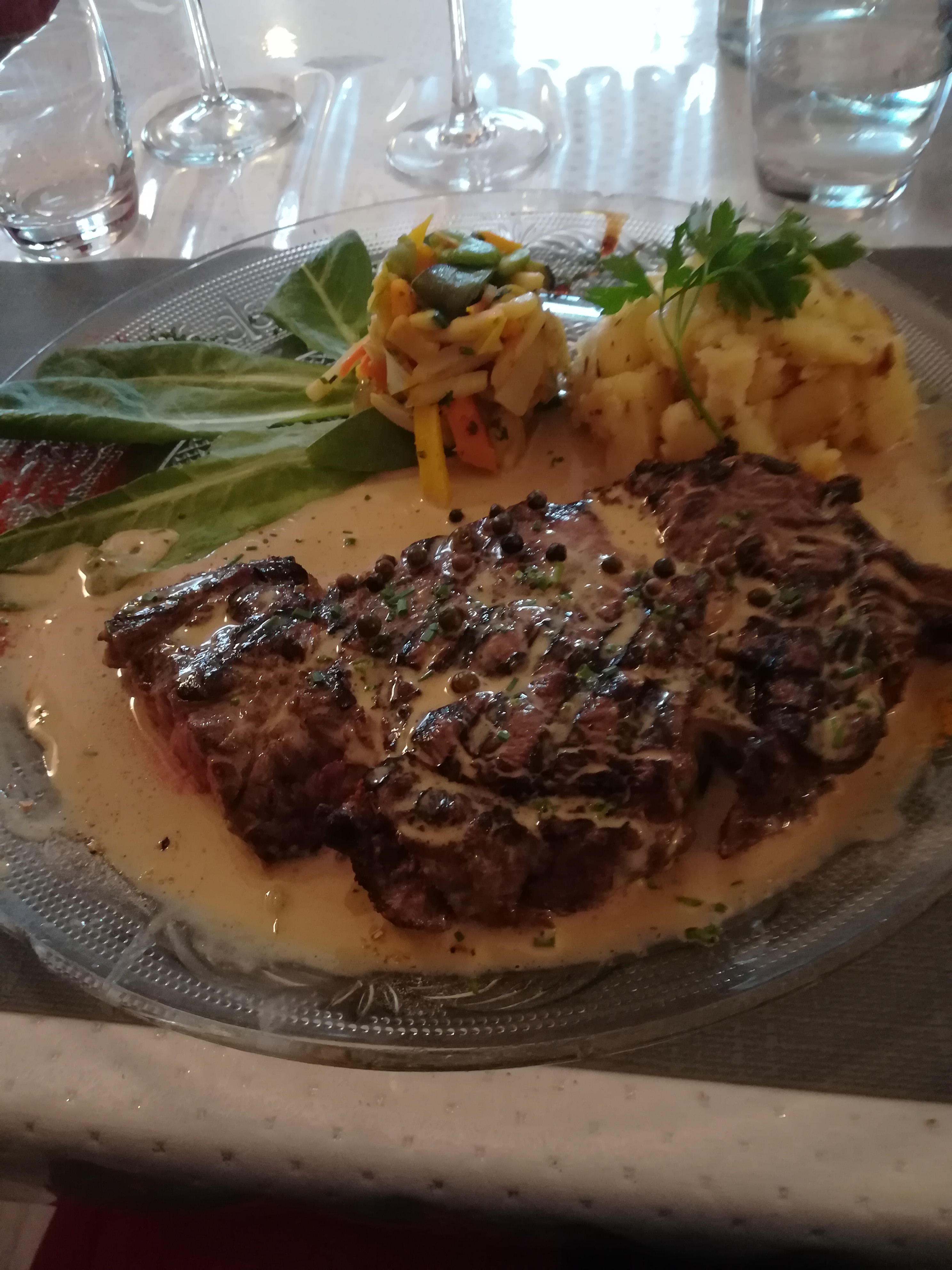 Si je devrais définir ce restaurant je dirais : GÉNÉREUX Les gérants sont sympathiques n'hésite pas à conseiller et échanger quelques blagues avec les clients. En termes de cuisine, on peut y trouver des plat tout aussi généreux en quantité qu'en qualité. Les portions sont importantes et savoureuses, on en ressort le ventre pleins et avec l'envie d'y revenir. Mon repas: Entrecôte aux 5 Baies et Pomme de terre sauté --- Thé très très gourmand