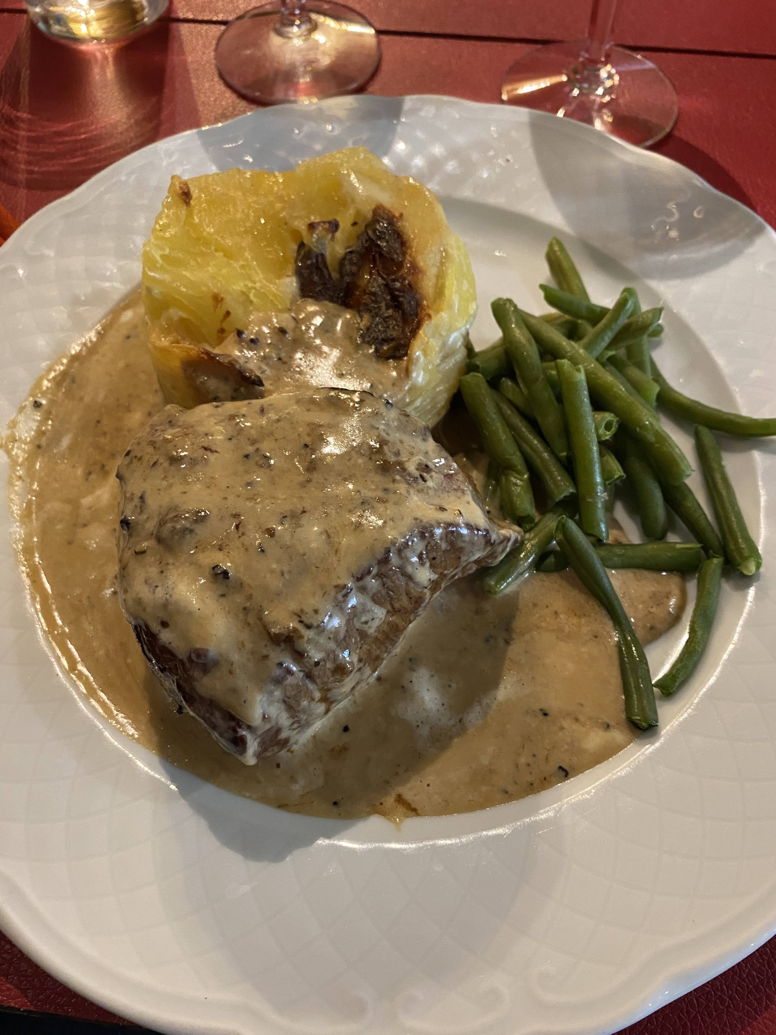 Excellente table avec un lapin aux pruneaux a tomber par terre ! Tres classique et traditionnel