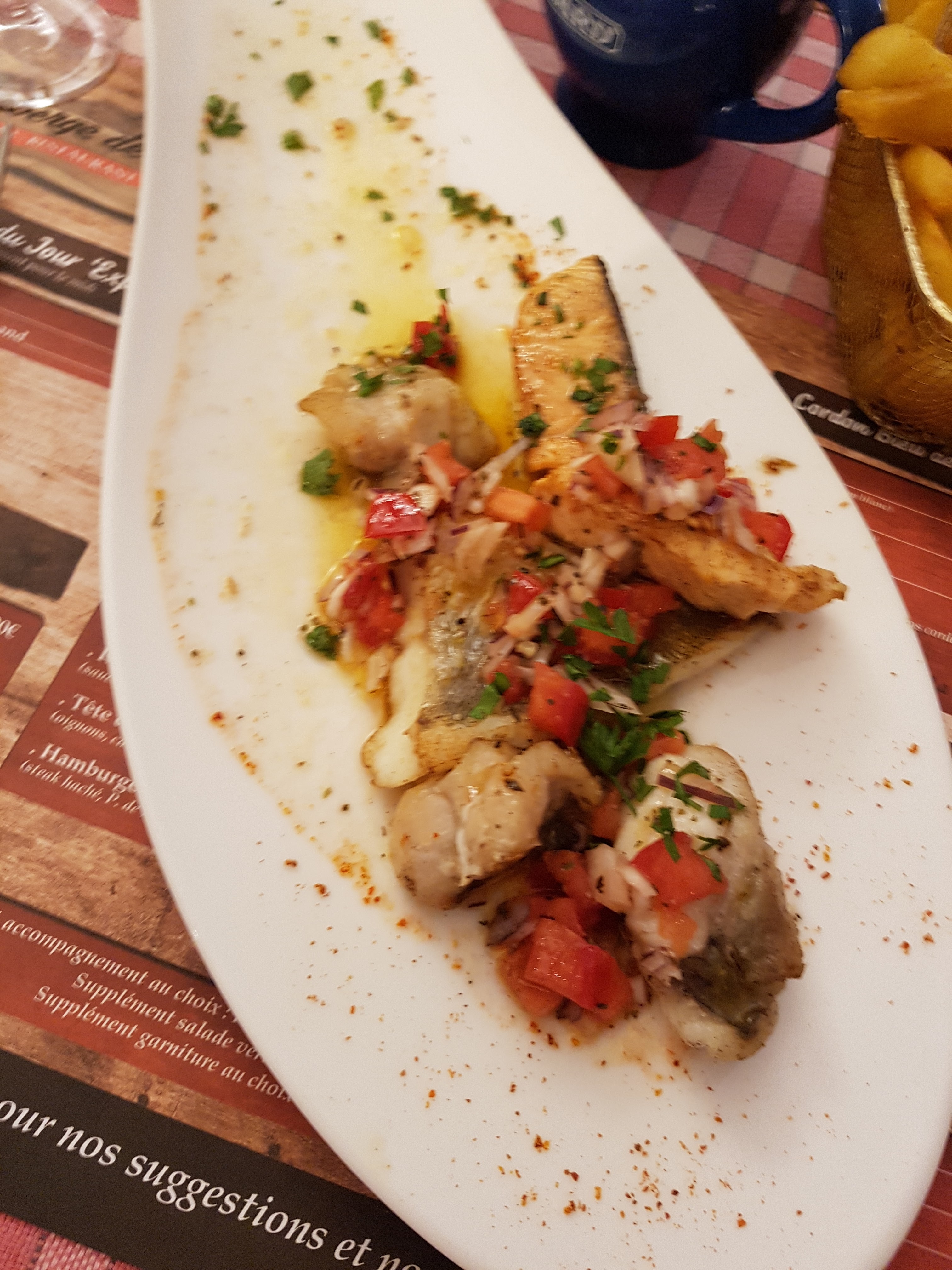 Cadre sympa, c est bon, mais assiette un peu juste et je suis pas un gros mangeur.