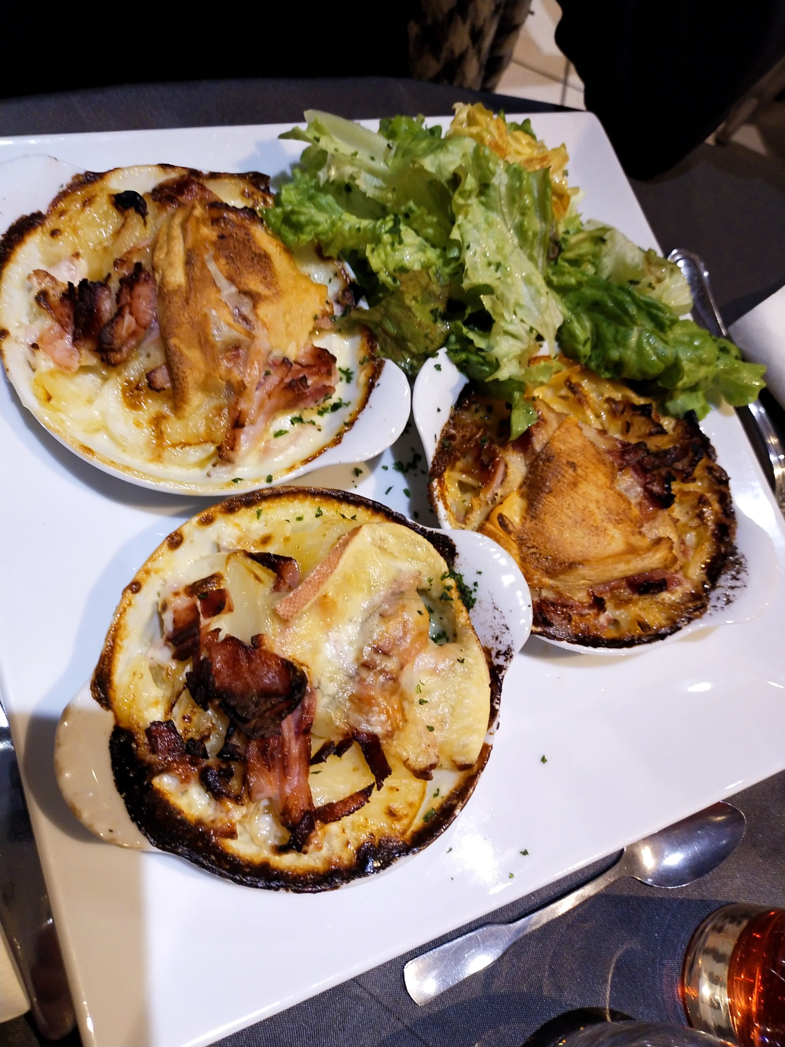 Je suis …, j’ai pris une fondu savoyarde ! Deja l’assiette a charcuterie a 8€ soit disante suffisante pour 2 avce 1 tranche de jambon sec 2 patates qui se battent en duel et 1 chorizo exagèrer ! De plus la serveuse n’était pas aimable de nous a pas proposer de dessert , le menus a 35€ le dessert etait incroyable de profiterole mais le plat coquilette et viande les quantités limites. De plus au moment de partir au lieu d’un aurevoir c’etait plus tot fermé la Porte il fais froid super 65€ ….