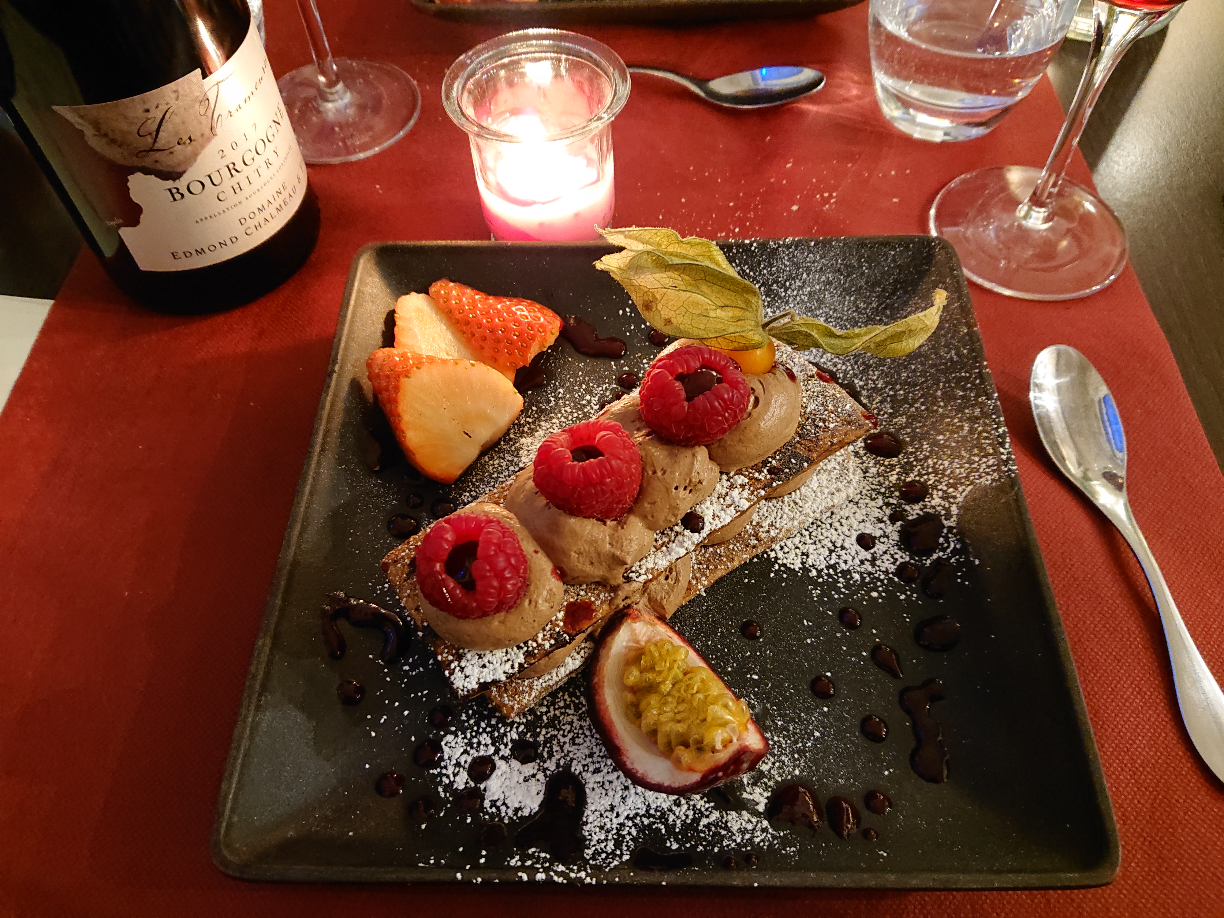 C'est un petit restaurant charmant. Nous y sommes allez un soir. Le menu propose 4 entrées, 4 plats et 4 desserts. Ce dernier est sur des tons très automnales, ca a un côté réconfortant. Mon copain a adoré le duo d oeuf poché.