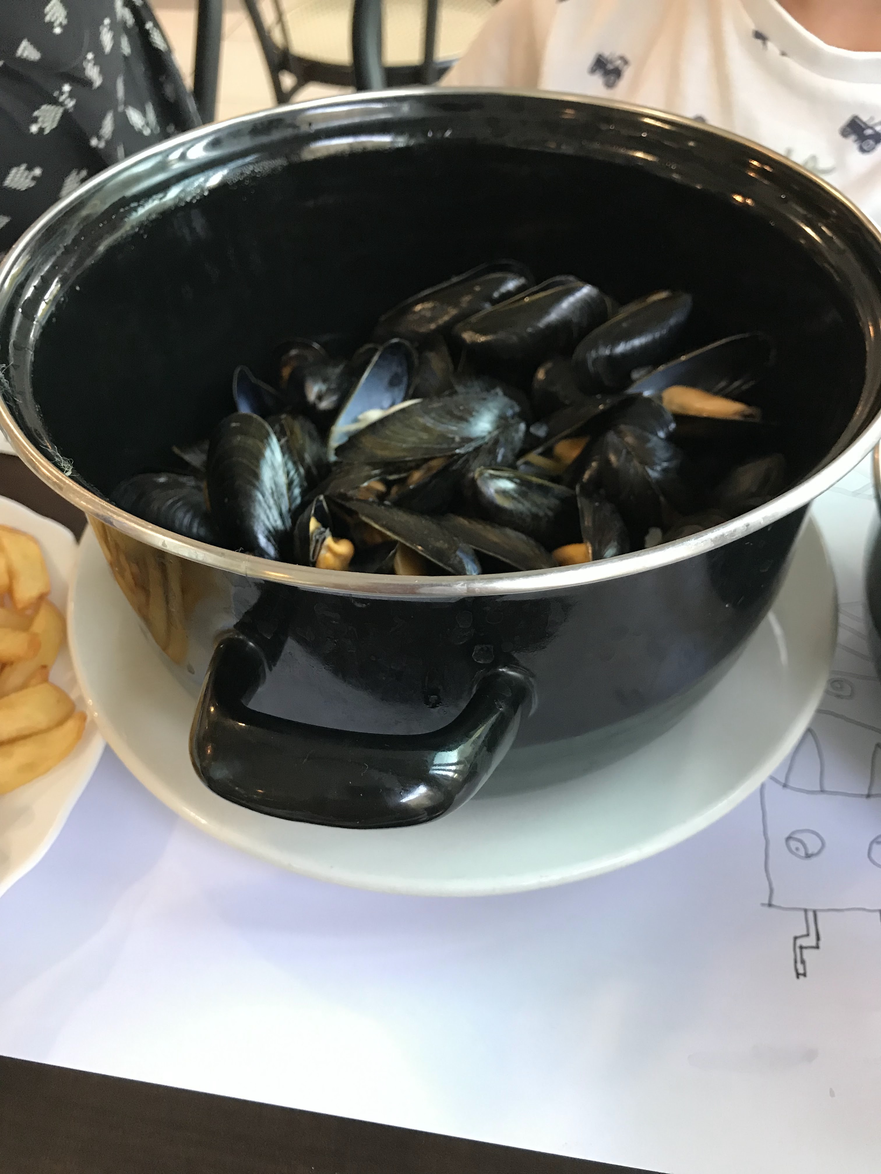 C'était mieux que ce que je pensais, avec des moules marinières à 13 €. 50 pour 800 g et des chips, un excellent rapport qualité-prix. C'était plein à craquer, l'hôte/propriétaire est sorti et s'est excusé et a dit qu'il pourrait y avoir un retard, ce qui était très bien pour avertir la foule. Le personnel était sympathique. Super endroit pour les enfants et aire de jeux à côté.