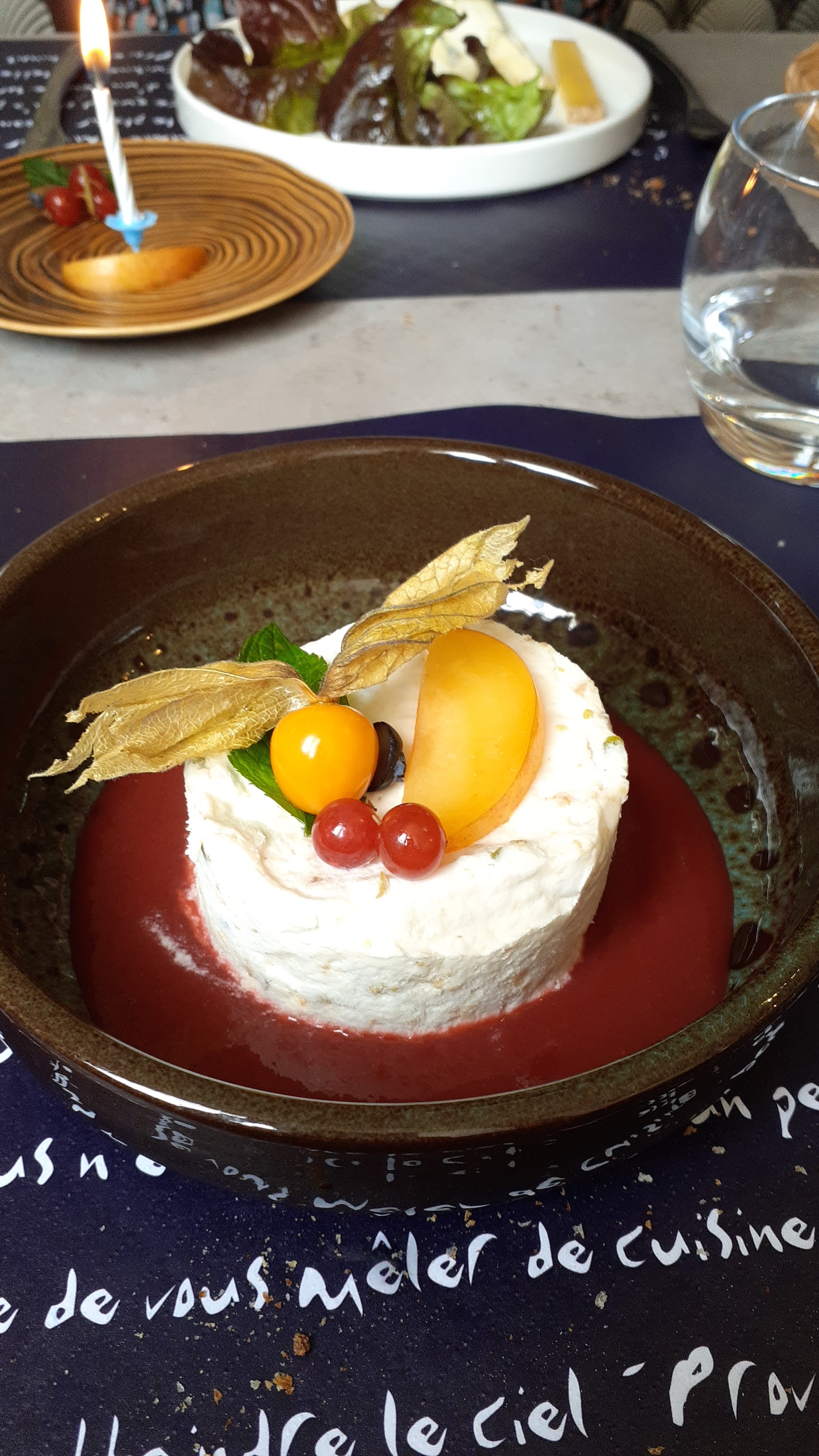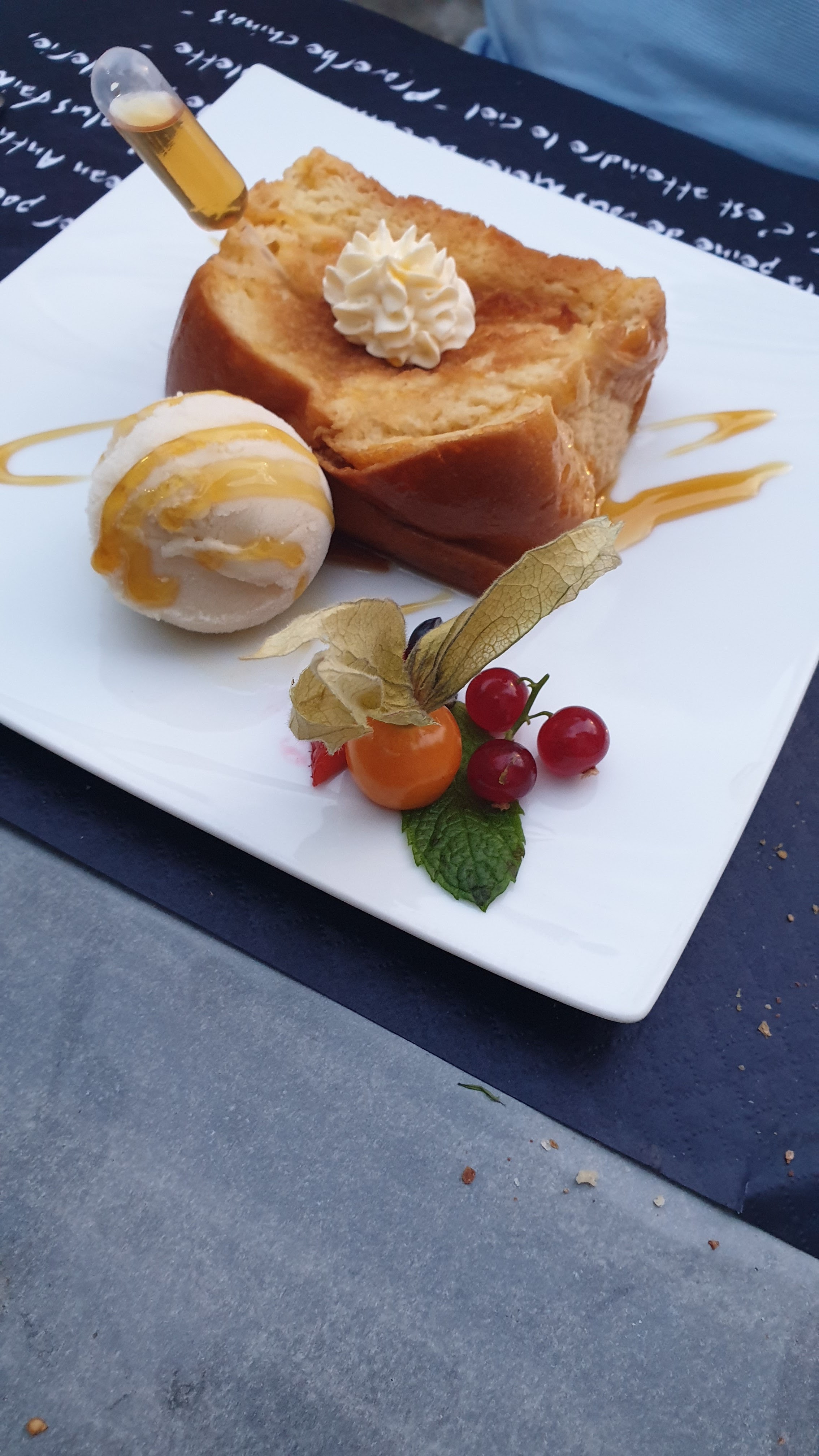 Mise à part la qualité du repas servi et la gentillesse du serveur, j ai surtout été frappée par le charisme rassurant de la dame qui nous a accueillis. Les yeux pétillants, remplis de bienveillance. Le genre de personne extrêmement rassurante que je suivrais sans aucun doute. Je suis venue, enceinte, avec mon amoureux, et elle m a tout de suite rassurée sur la cuisson des aliments, le lait pasteurisé pour le fromage etc... toutes les réponses auxquelles une femme enceinte attend d être rassurée quand elle mange ailleurs que chez elle. Merci Madame. Il y a des gens que l on ne croise qu une seule fois mais qui marquent pour toujours. Vous êtes parmi ceux là. Votre énergie, votre bienveillance et votre gentillesse me laisseront un super souvenir, et tout ça, même derrière votre masque😉