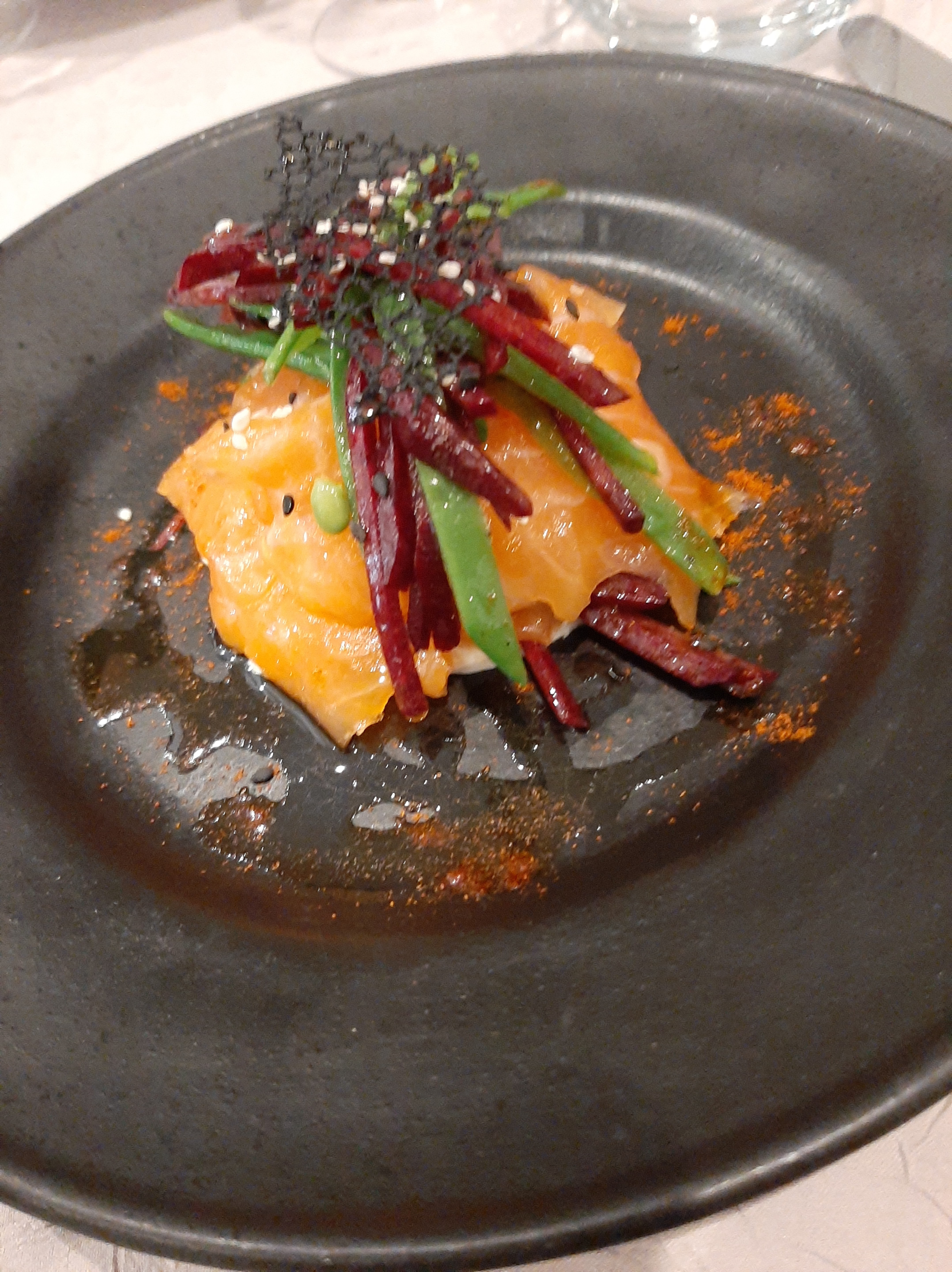 Une soirée délicieuse à tous points de vue .L'accueil est toujours agréable, la salle de restaurant est jolie et l'ambiance feutrée. Les assiettes sont colorées , originales et délicieuses. Un vrai bon moment...