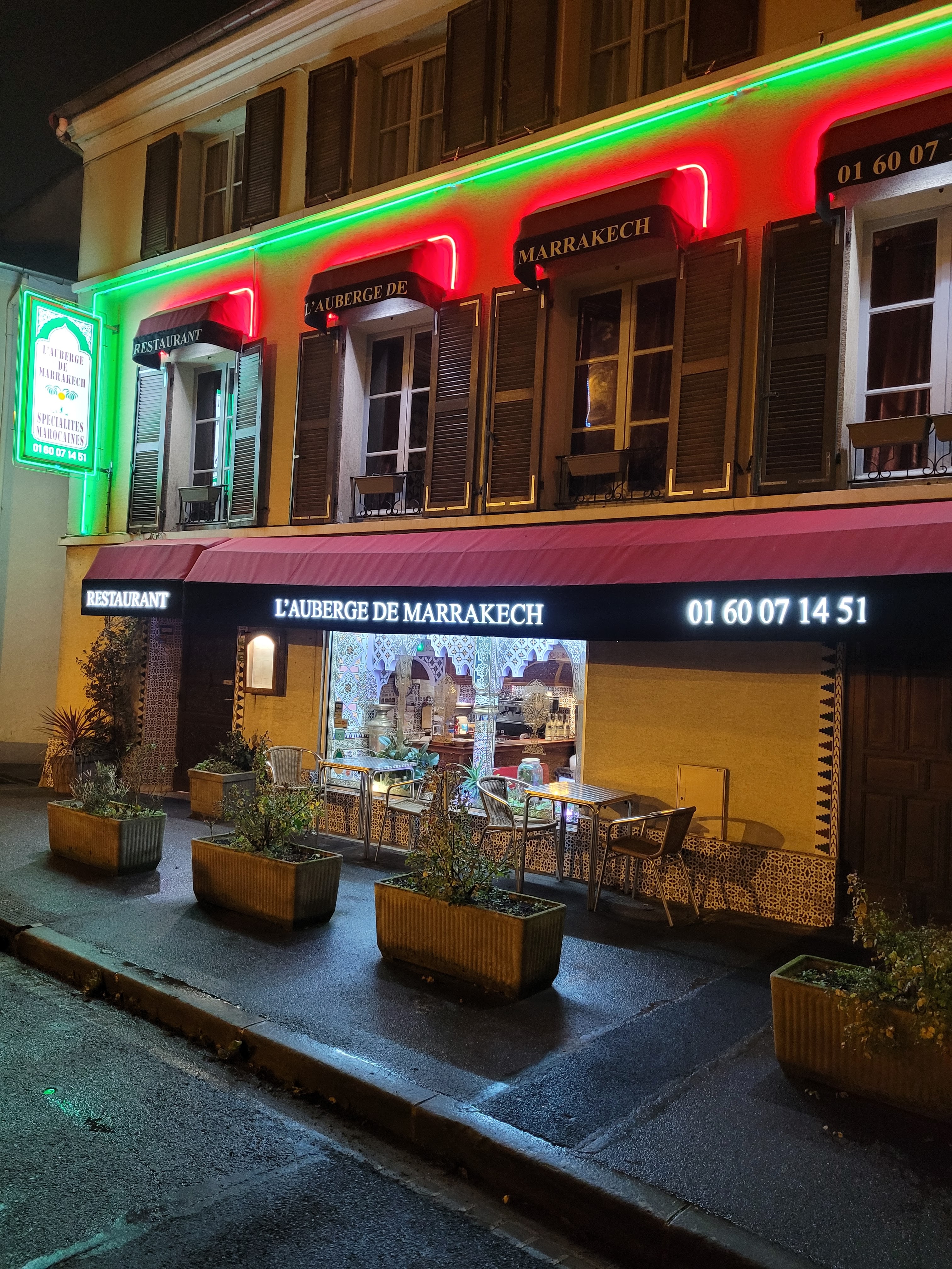 Bel accueil très bonne cuisine et bel endroit Le personnel chaleureux et accueillant Toujour un plaisir d'aller manger à l'auberge de marrackech Un repas excellent comme toujour L'assurance de passer une belle soirée La salle un peut bruillante car toujour beaucoup de monde (normal c'est tellement bon) Je recommande vivement vous ne serais pas déçu Ça m'arrive de commandé à emporter c'est aussi bon