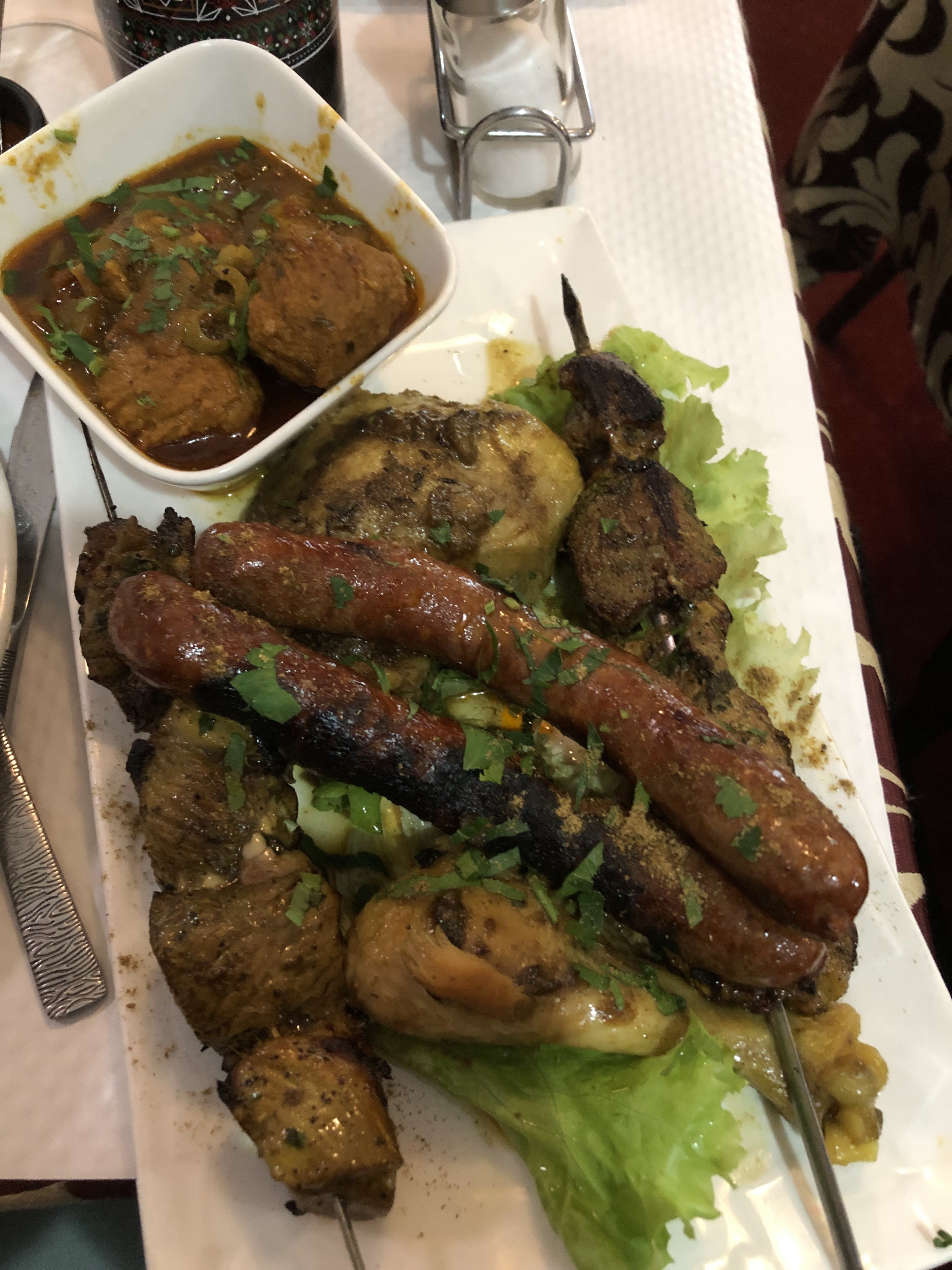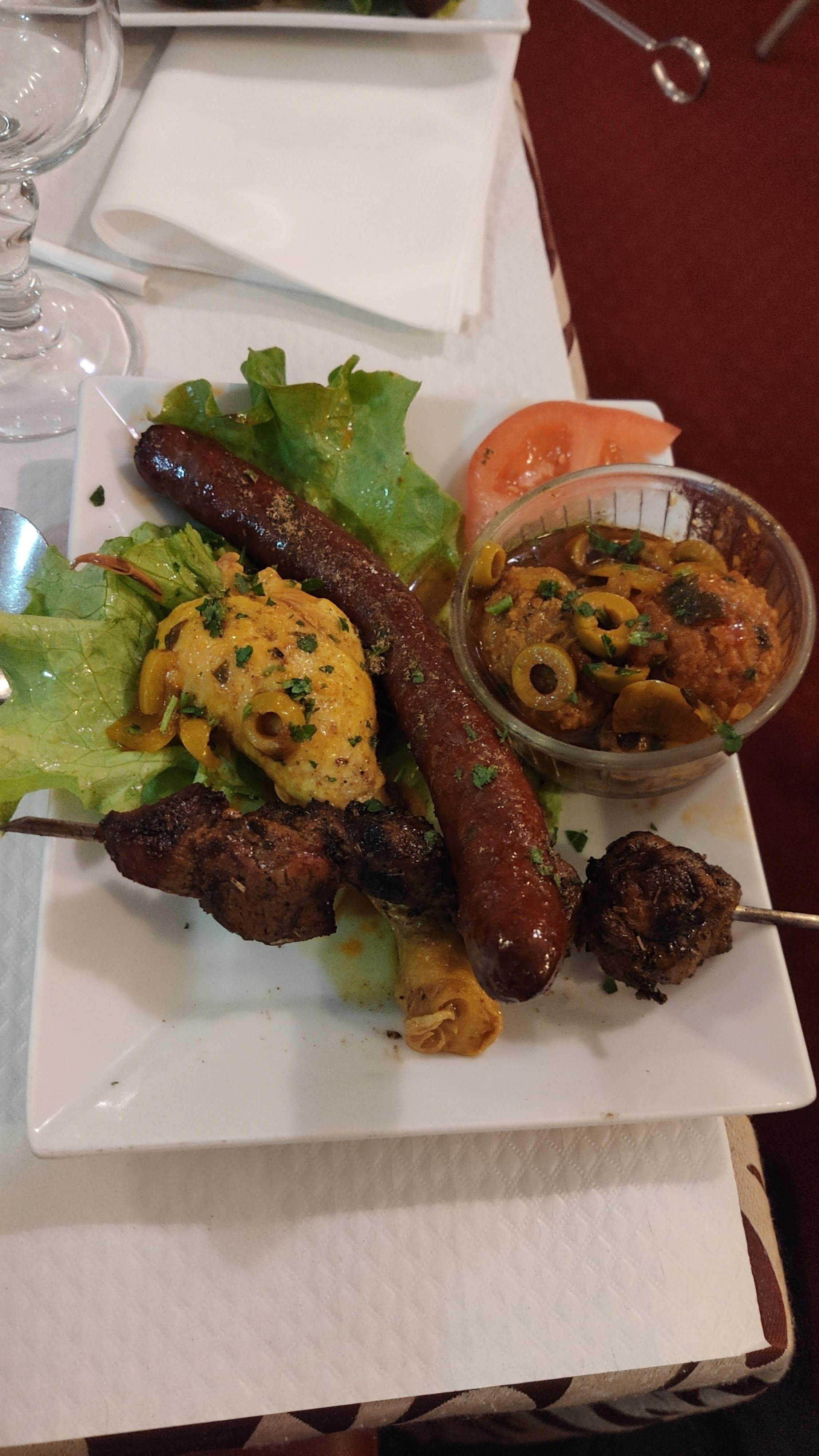 Bel accueil, des plats typiques orientaux savoureux. J’ai bien apprécié même si la viande n’est pas halal, je me suis contentée de leur brick aux crevettes « un délice et très copieuse », je me suis régalée et mes amis ont adoré les spécialités. Merci