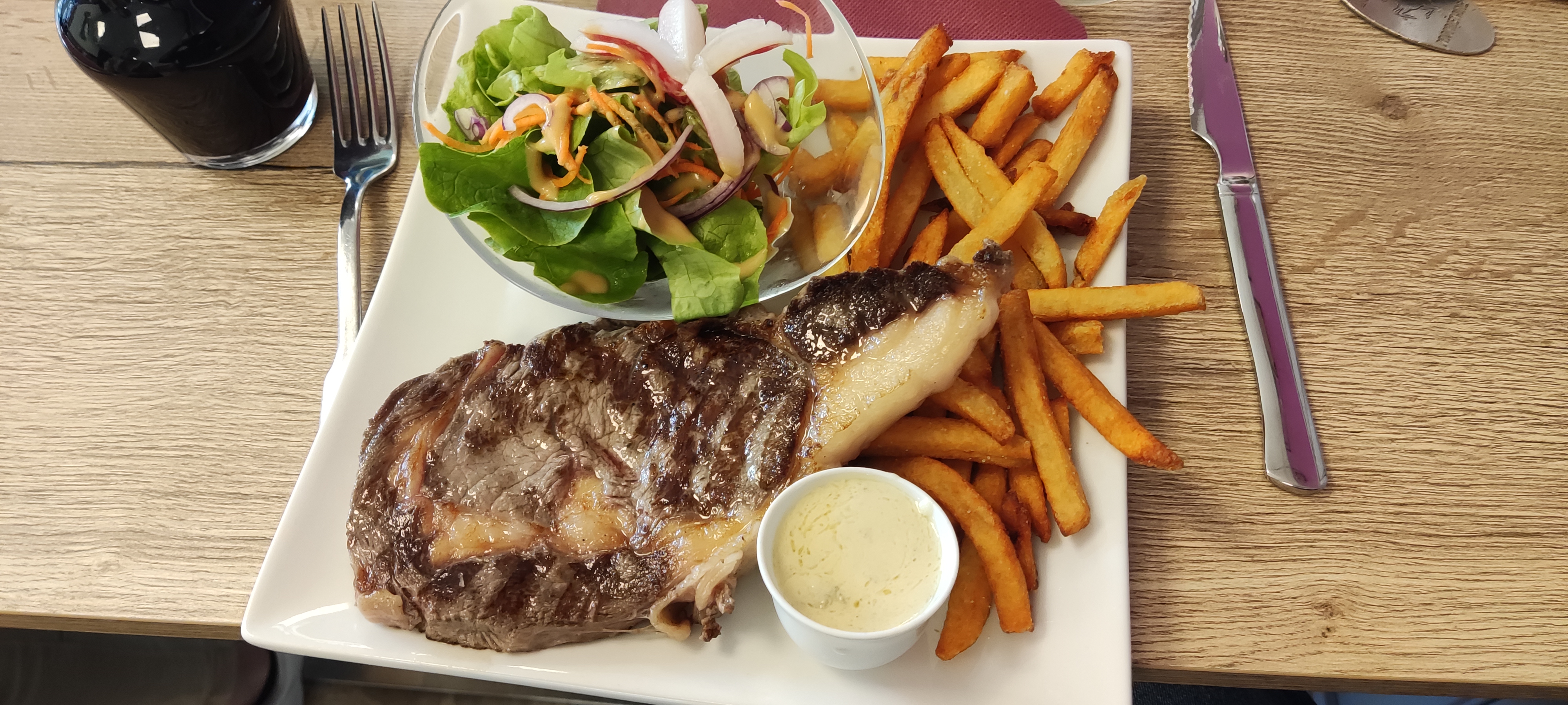 Nous nous sommes régalés avec une très bonne viande de bœuf ( tendre comme du beurre) avec des frites maison. Accueil souriant.