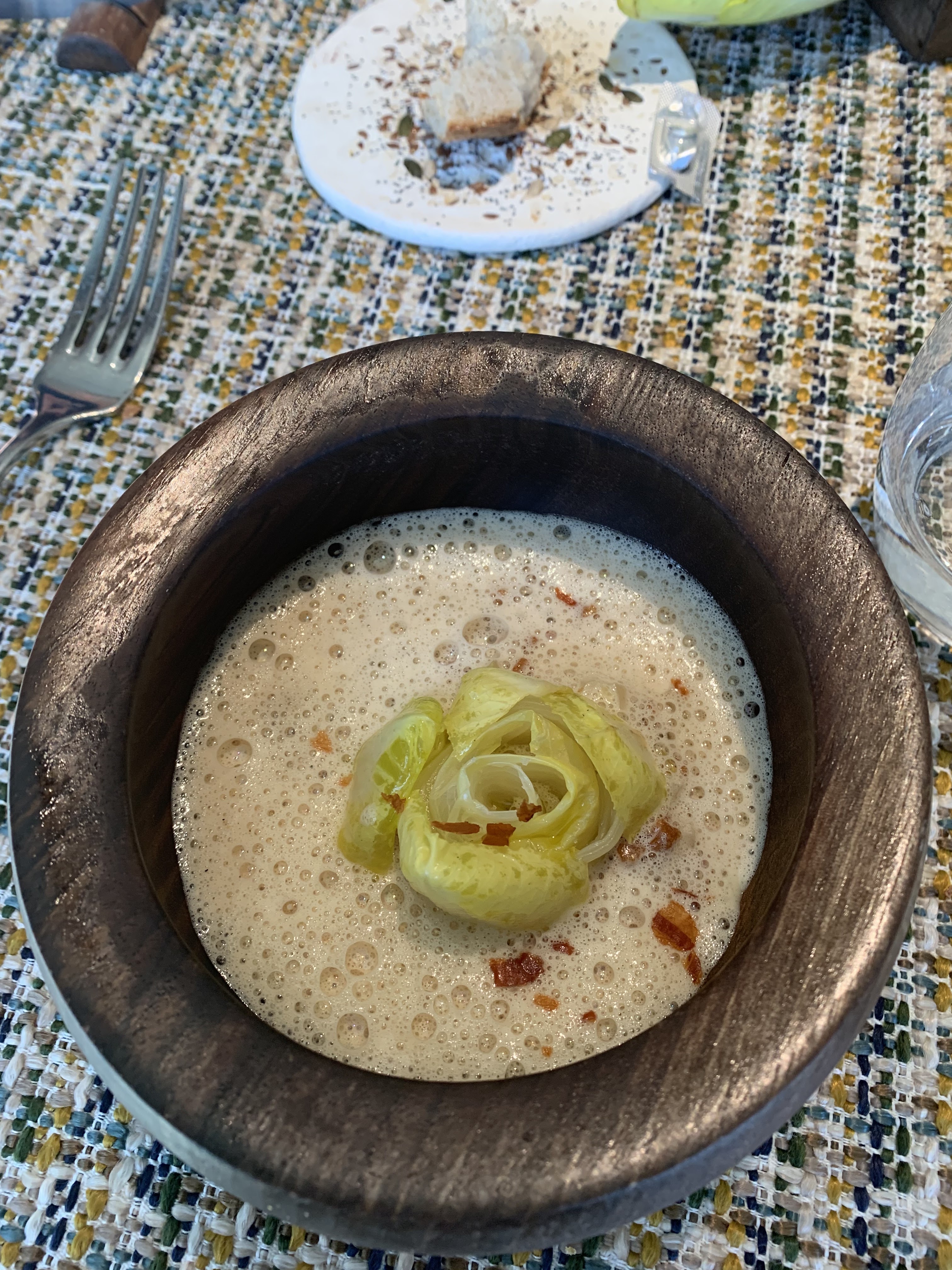 Une talentueuse cuisine pleine de saveurs et de créativité :) Le visuel est subtil et délicat, les goûts sont francs et prononcés, c’est de la vraie cuisine qu’il est rare de trouver de nos jours. Vous serez bercé du début à la fin du repas par vos hôtes, un peu comme un conte de fée. Venez avec une certaine ouverture d’esprit et laissez-vous porter par la magie des lieux. Le cadre est exceptionnel à l’intérieur comme à l’extérieur, même les contenants en noyer sont bien pensés. Certains diront que le repas a un certain coût mais il les vaut vraiment, vu le travail fourni et la qualité des produits (y compris des vins!) C’est une très belle évasion tout au long de la soirée. Merci à toute l’équipe ! PS : j’ai adoré le plat à la livèche (le plat rond et vert en photo)