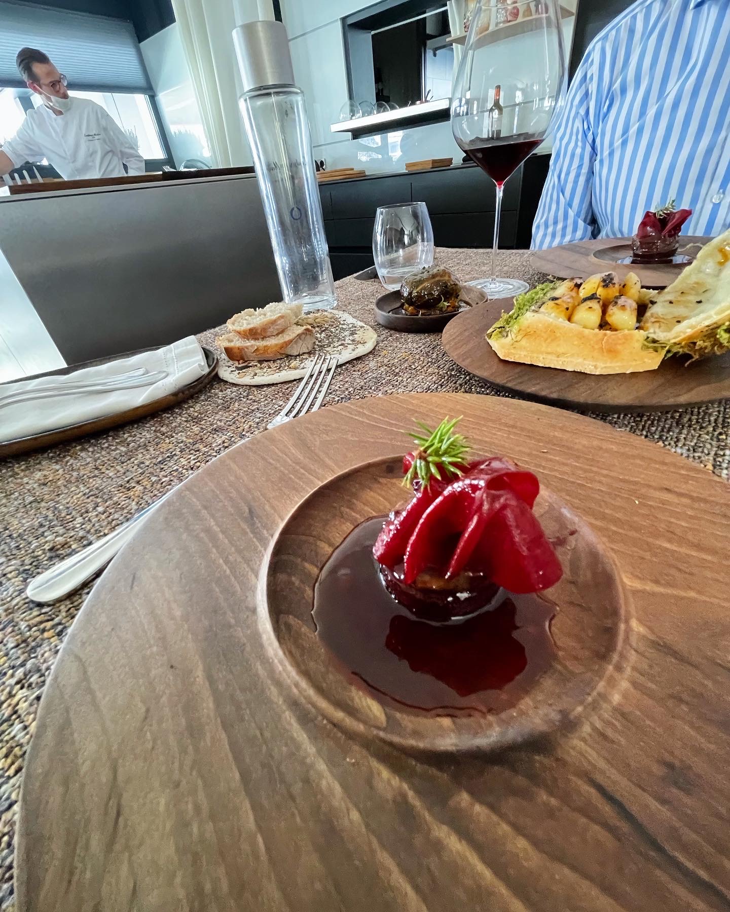 Un opéra en 7 actes alliant esthétique,rythme,créativité… justesse des saveurs et des cuissons . Nous avons applaudi au dernier acte ,toute la troupe était là mais malgré nos rappels la magie s’est arrêtée . ☺️merci à toute l’équipe autour de sandrine et du chef qui a su tout au long de ce merveilleux moment nous transmettre leur passion leur savoir et le goût de travailler ensemble dans un bien bel endroit Bravo ! A quand un livre de recettes pour rendre ce moment moins éphémère ? bonne saison automne hiver a bientôt