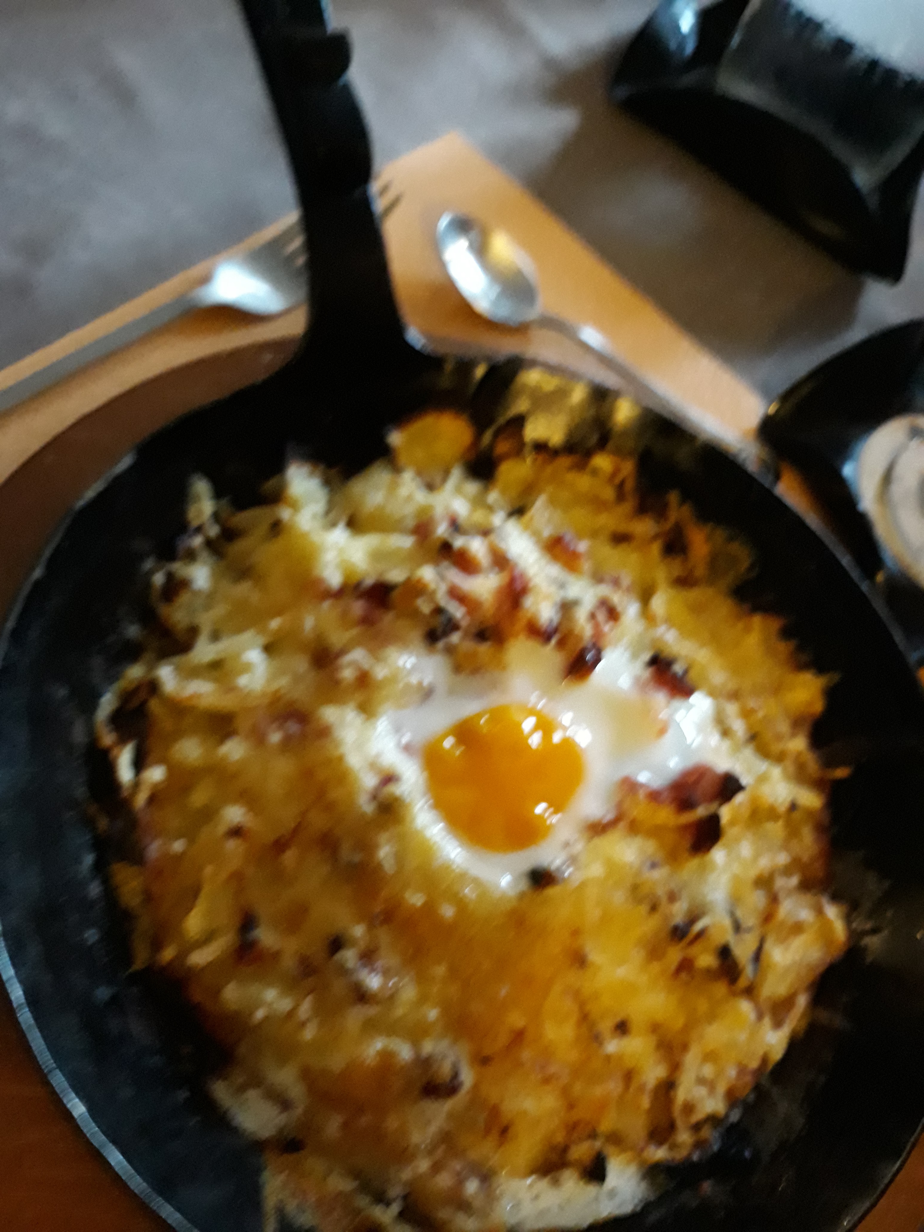 Nous sommes arrêtés par hasard, belle surprise, bon accueil, le röstis est un délice.....