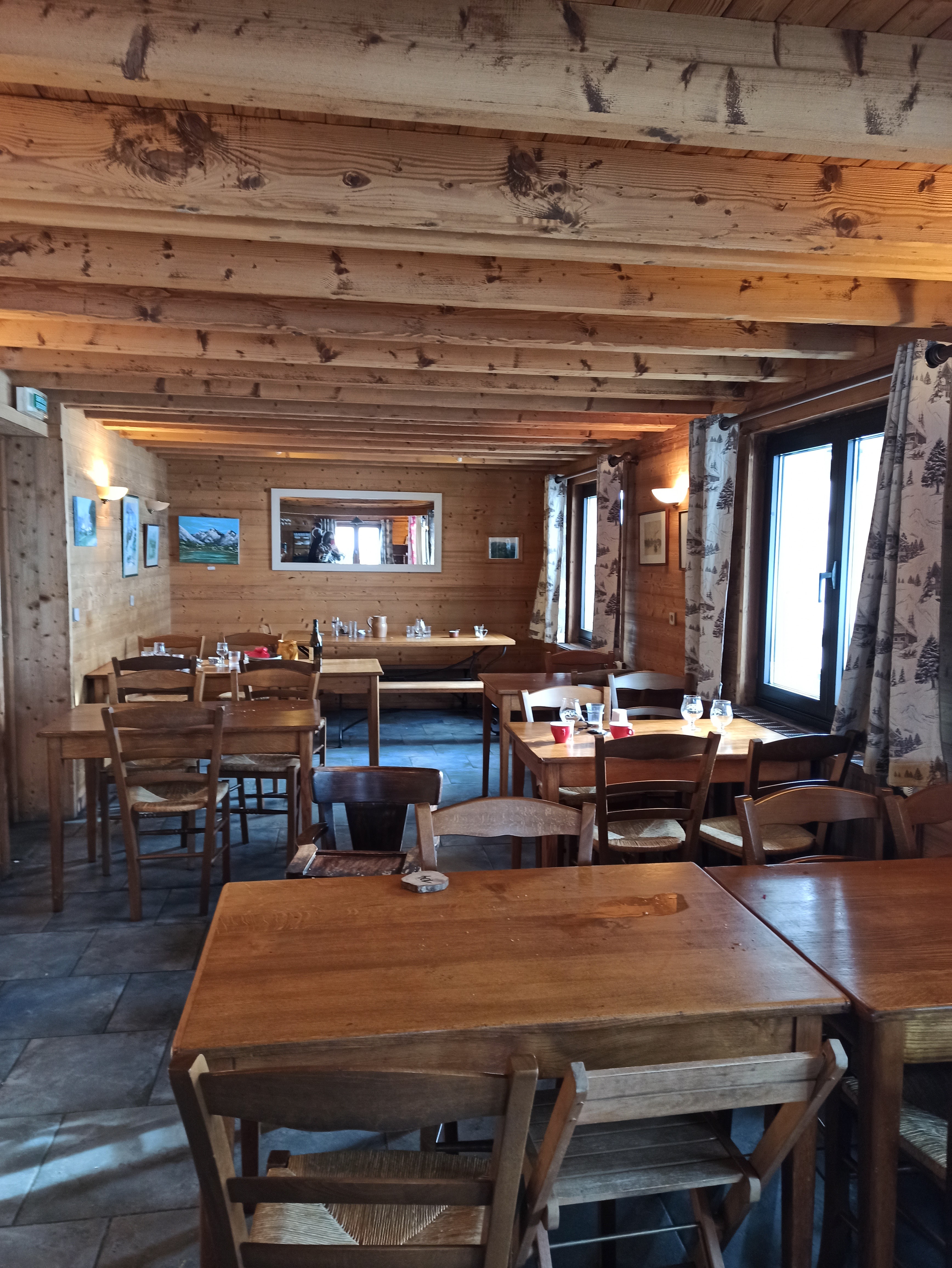 Restaurant dans un vieux chalet isolé en altitude, ambiance authentique et bons plats traditionnels. Seul problème (peut-être ponctuel je ne sais pas) lors de notre passage : impossible de payer par carte bancaire.