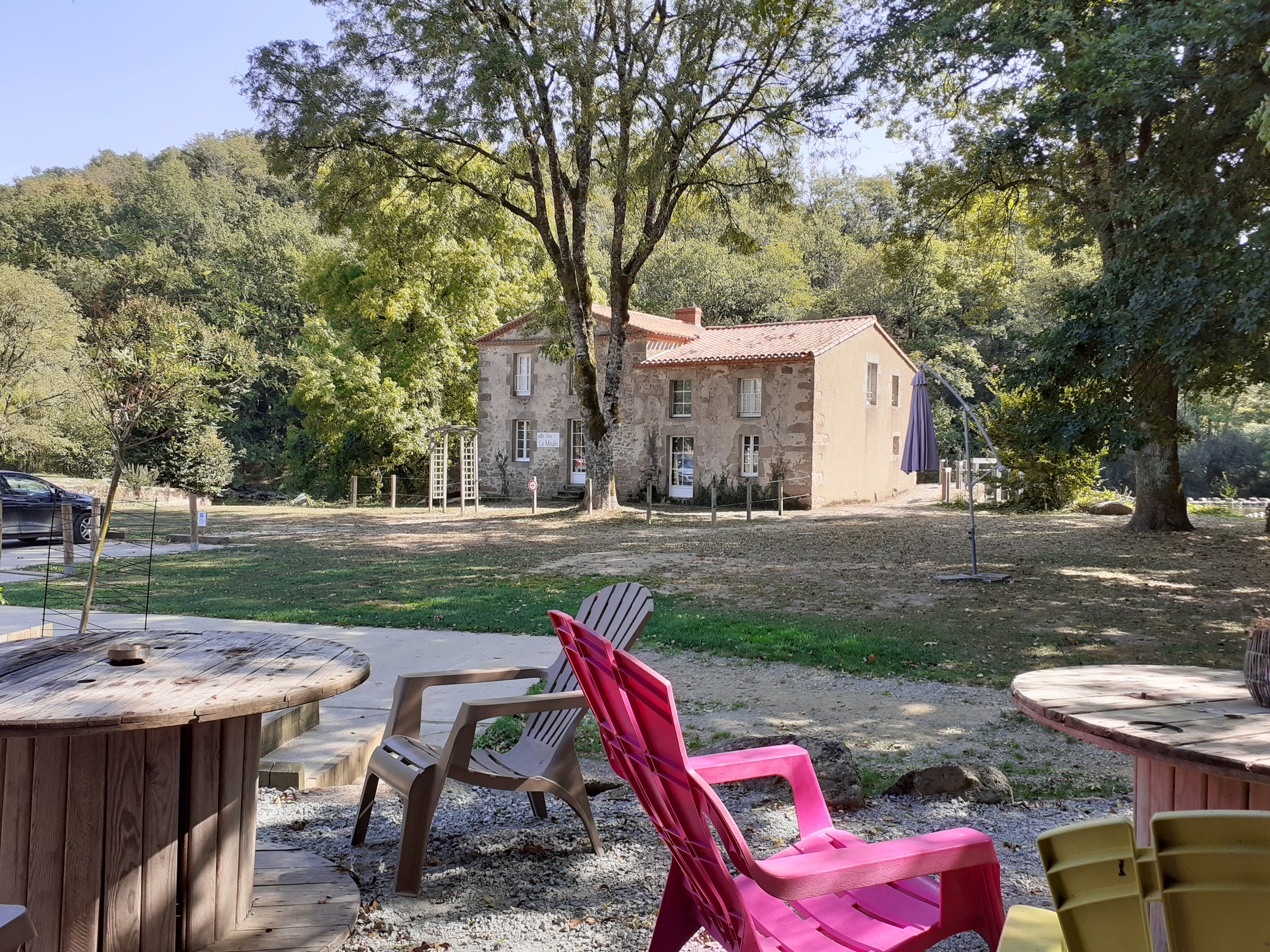Lieu magnifique privatisé pour un petit mariage champêtre sous les arbres en pleine chaleur on était au top 👌 ! Arrivés avec une magnifique table dressée en extérieur sous les arbres un cadre splendide 🤩 Repas délicieux de l’entrée au dessert avec produits frais 😋 😋 Propriétaires super sympas et accueillants 🤗👍