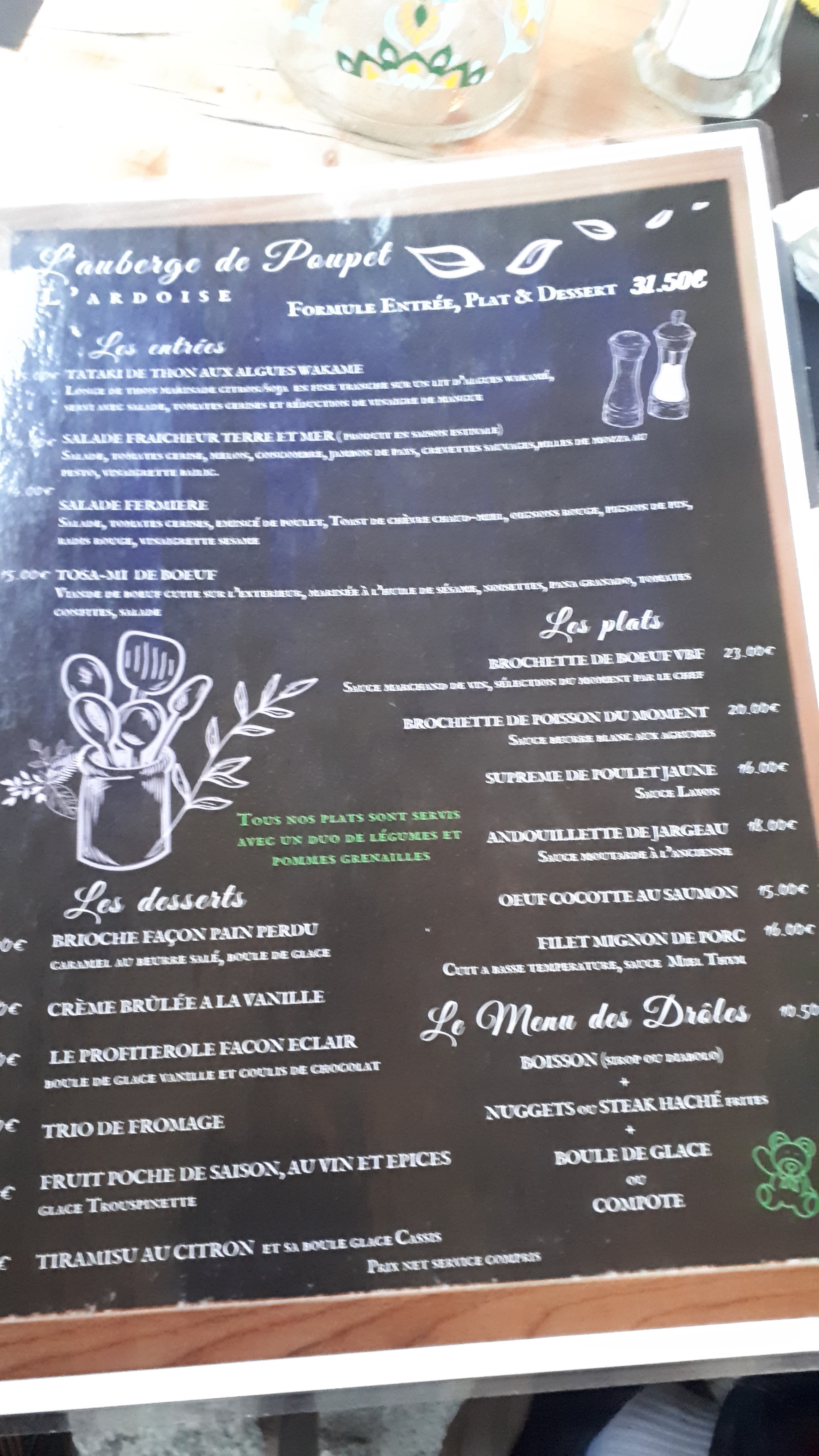 Cadre très agréable, très bon accueil mais prix trop élevé pour une cuisine simple et goûteuse 31€ pour entrée /plat