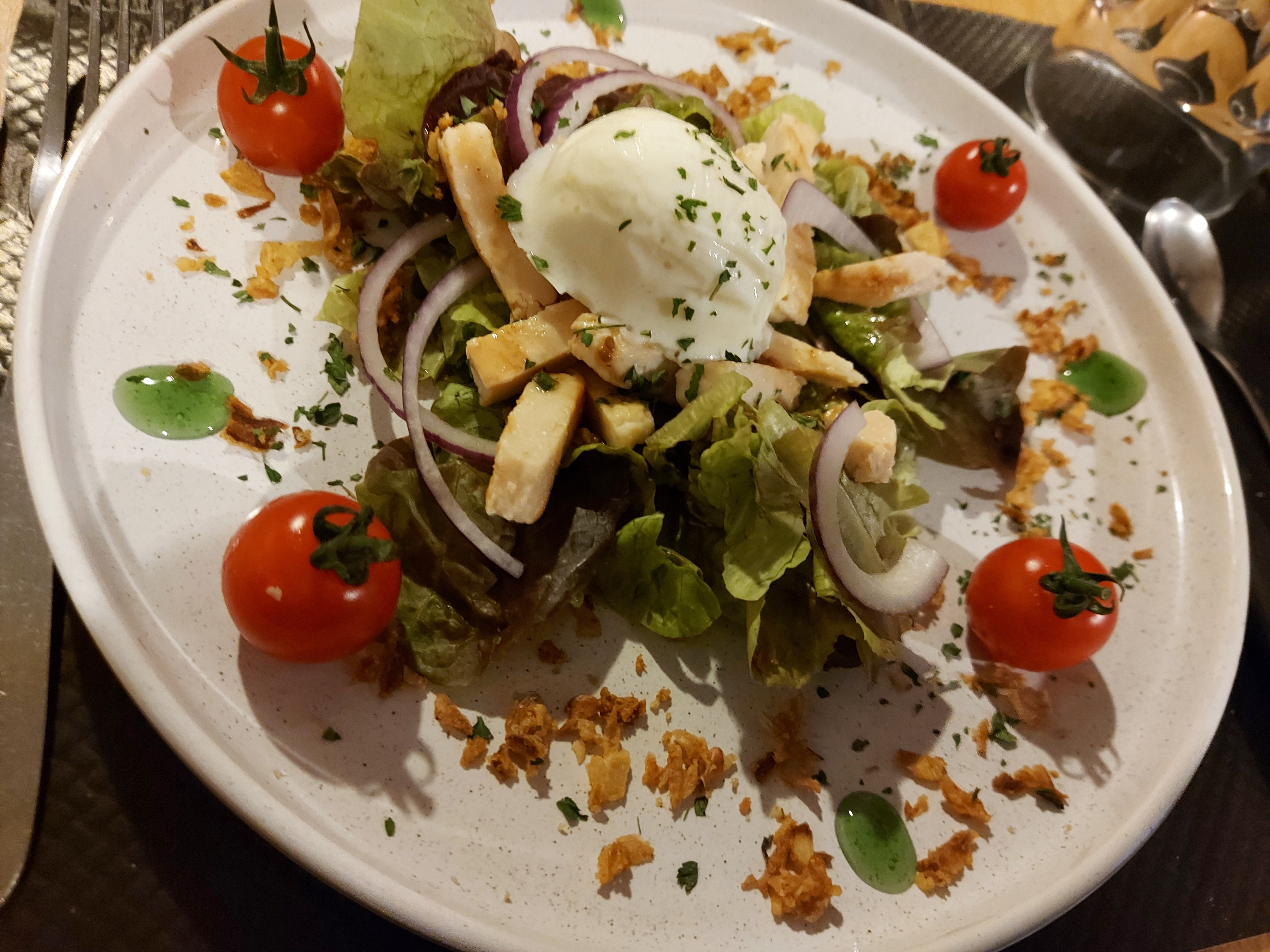 Cuisine très très bonne et originale, personnel très sympathique ! Endroit convivial mais il manque un petit fond de musique, sinon superbe moment 🤗