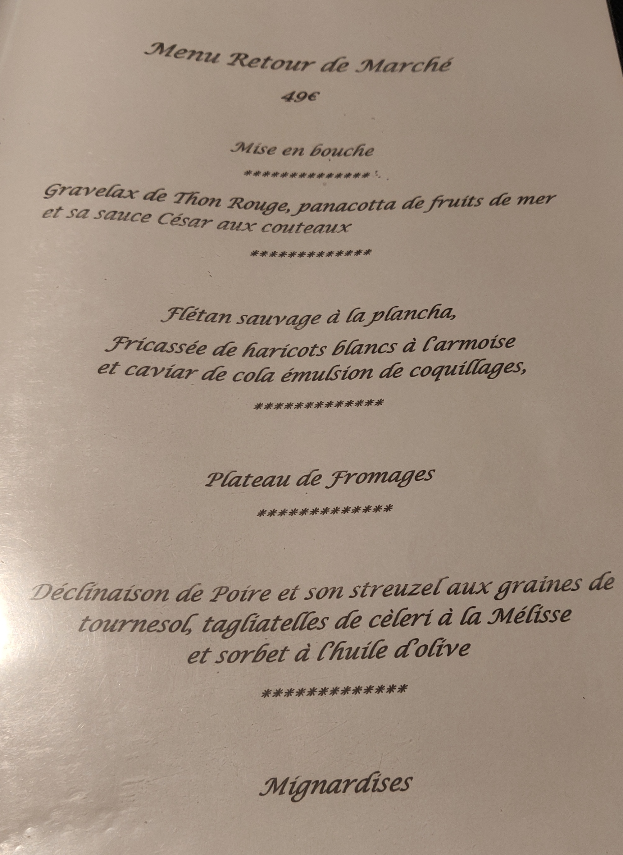 Repas très raffiné. NE PAS hésiter à prendre le menu à 43 euros. Nous reviendrons