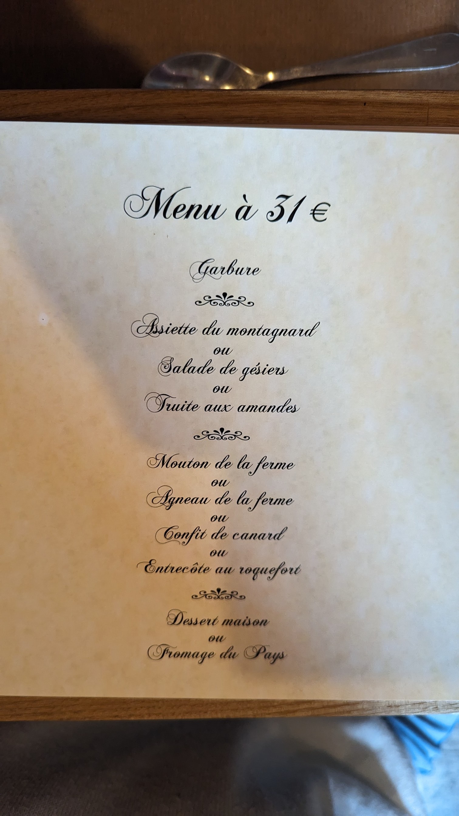 Cadre très sympa,ainsi que le patron qui représente bien le pays toy avec son parler patois, repas du terroir excellent