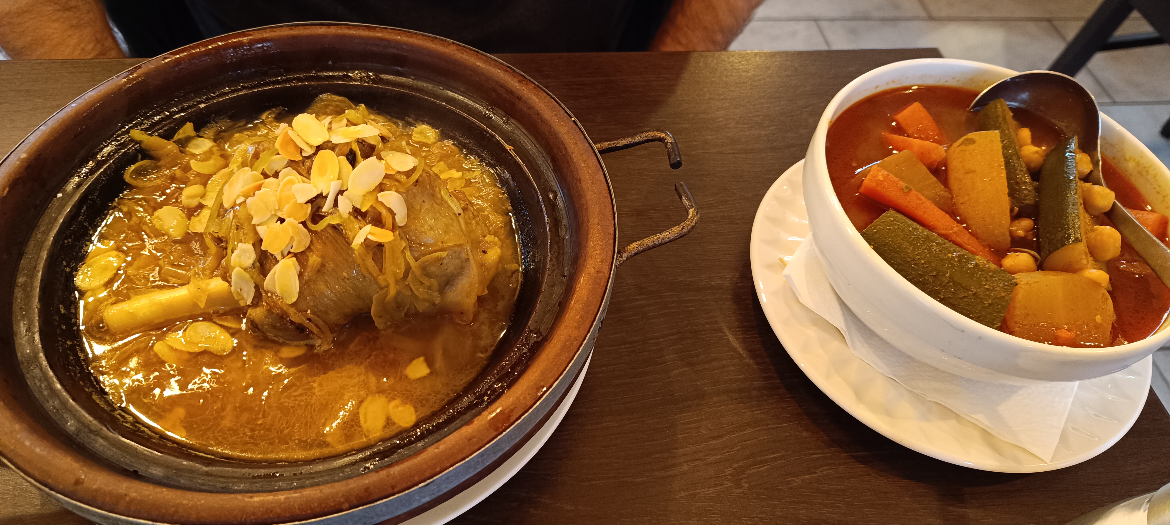 Très bon accueil, le personnel est vraiment sympa et le service.. super ! La surprise de découvrir un lit d'oignons fondants sous la viande.. un délice ! Une tajine délicatement préparée avec soin. Les assiettes et les plats sont généreusement remplis, et comparé à d'autres restaurants du coin le prix ne laisse pas sans voix, savourer pour comprendre et terminer ce repas avec un agréable thé à la menthe maison et une boîte de pâtisserie berbère à emporter Nous reviendrons, je recommande sans hésiter ! Merci pour ce moment et votre hospitalité