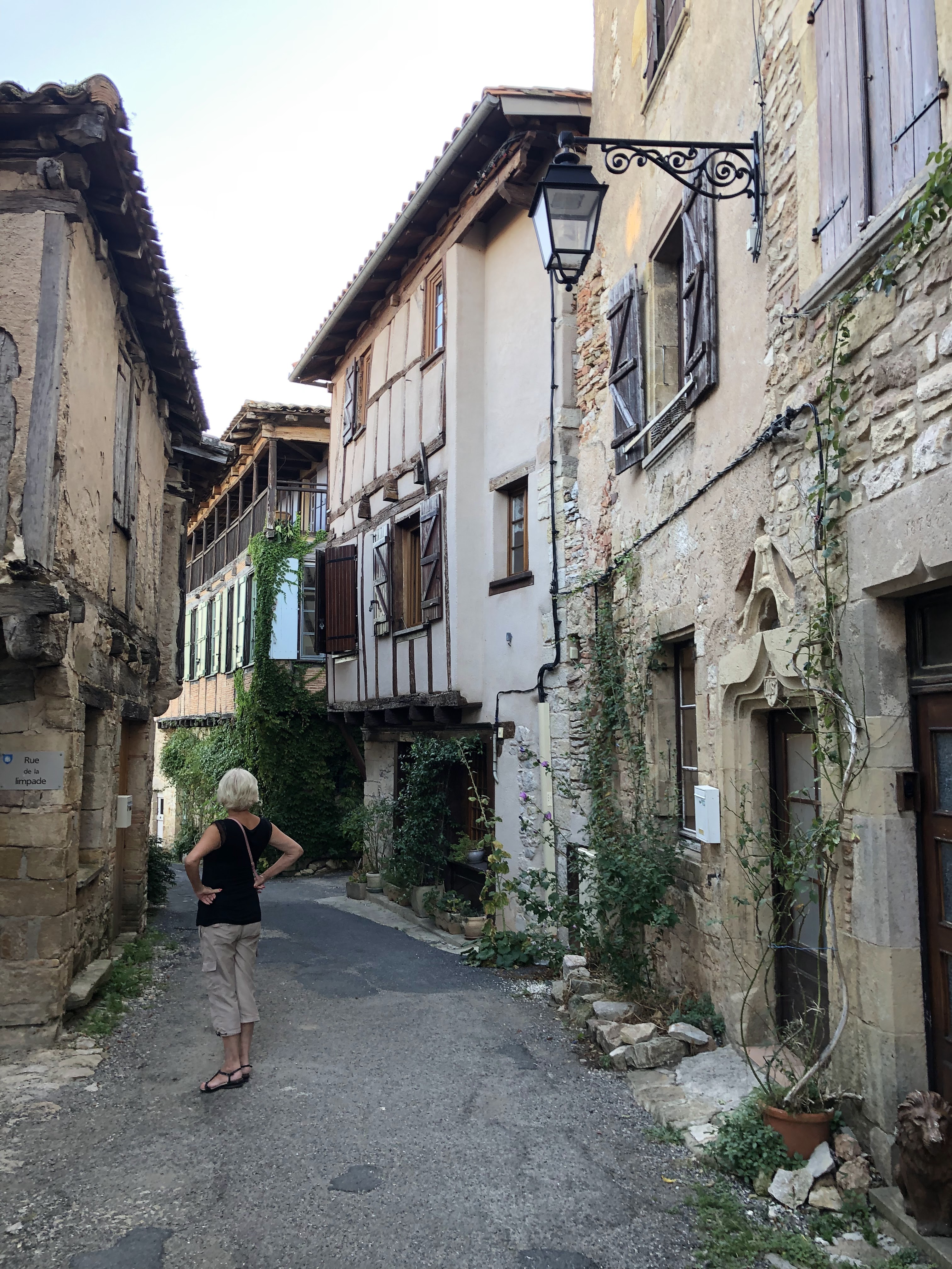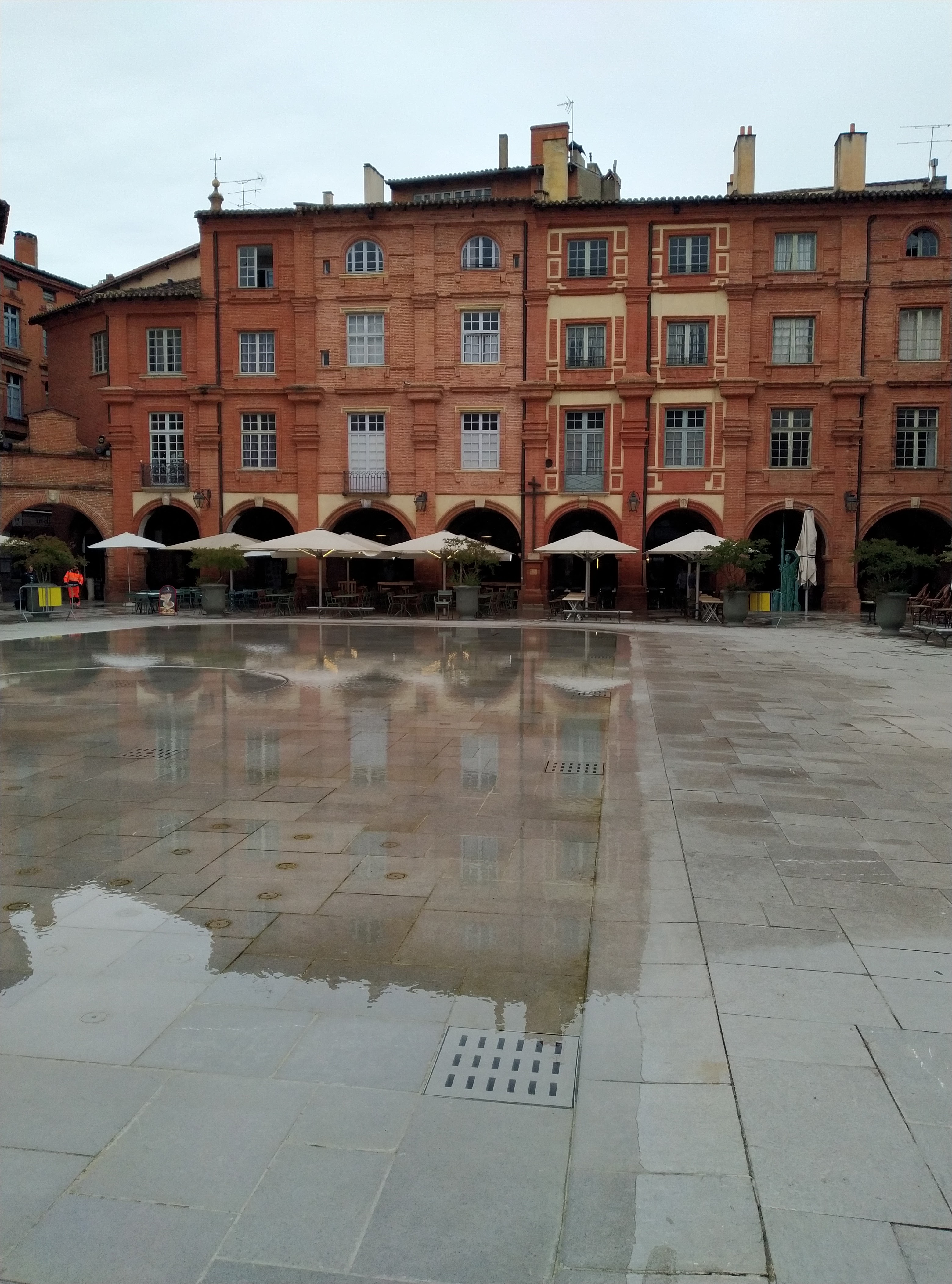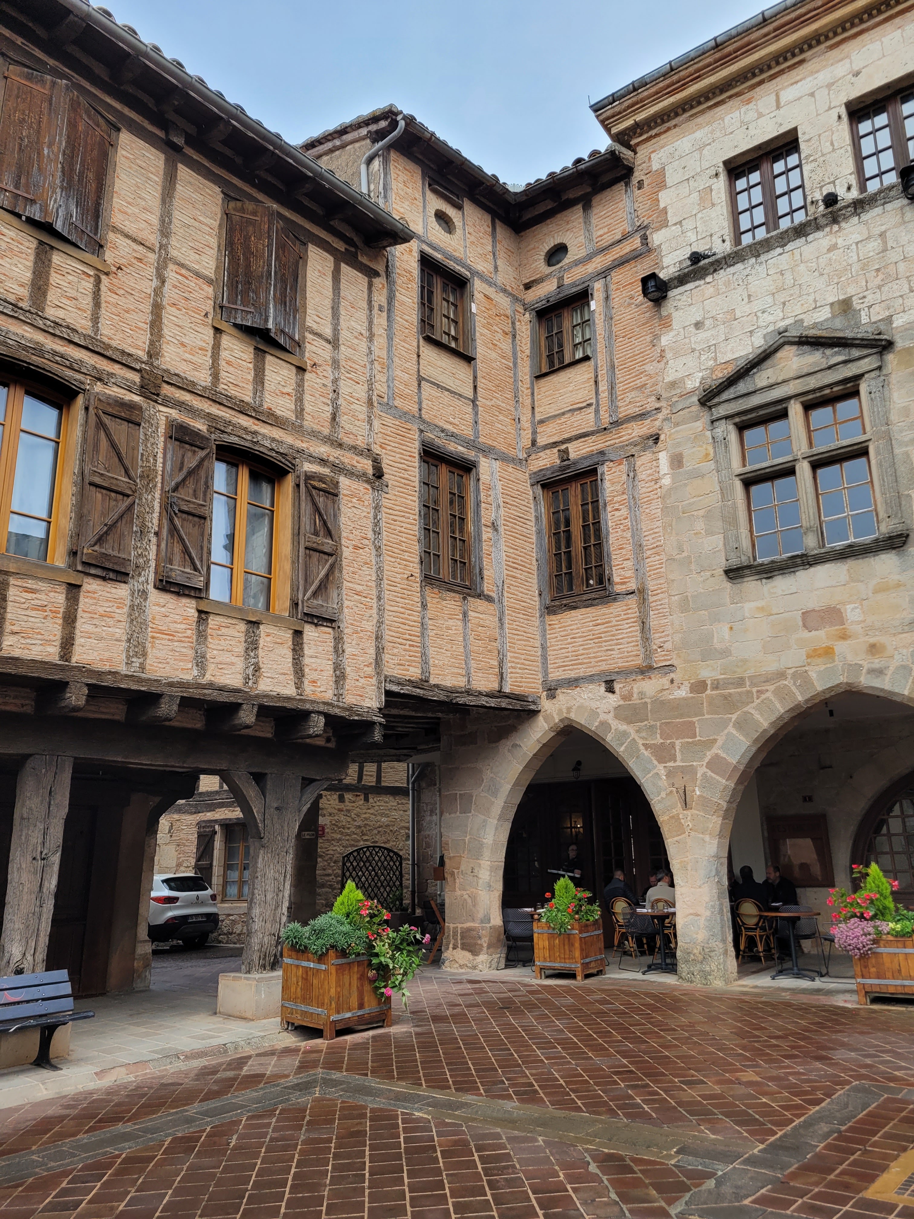 C'était l'après-midi.Nous avons juste consommé des rafraîchissements, pour profiter de la beauté de la petite place moyenâgeuse fermée et entourée d'arcades