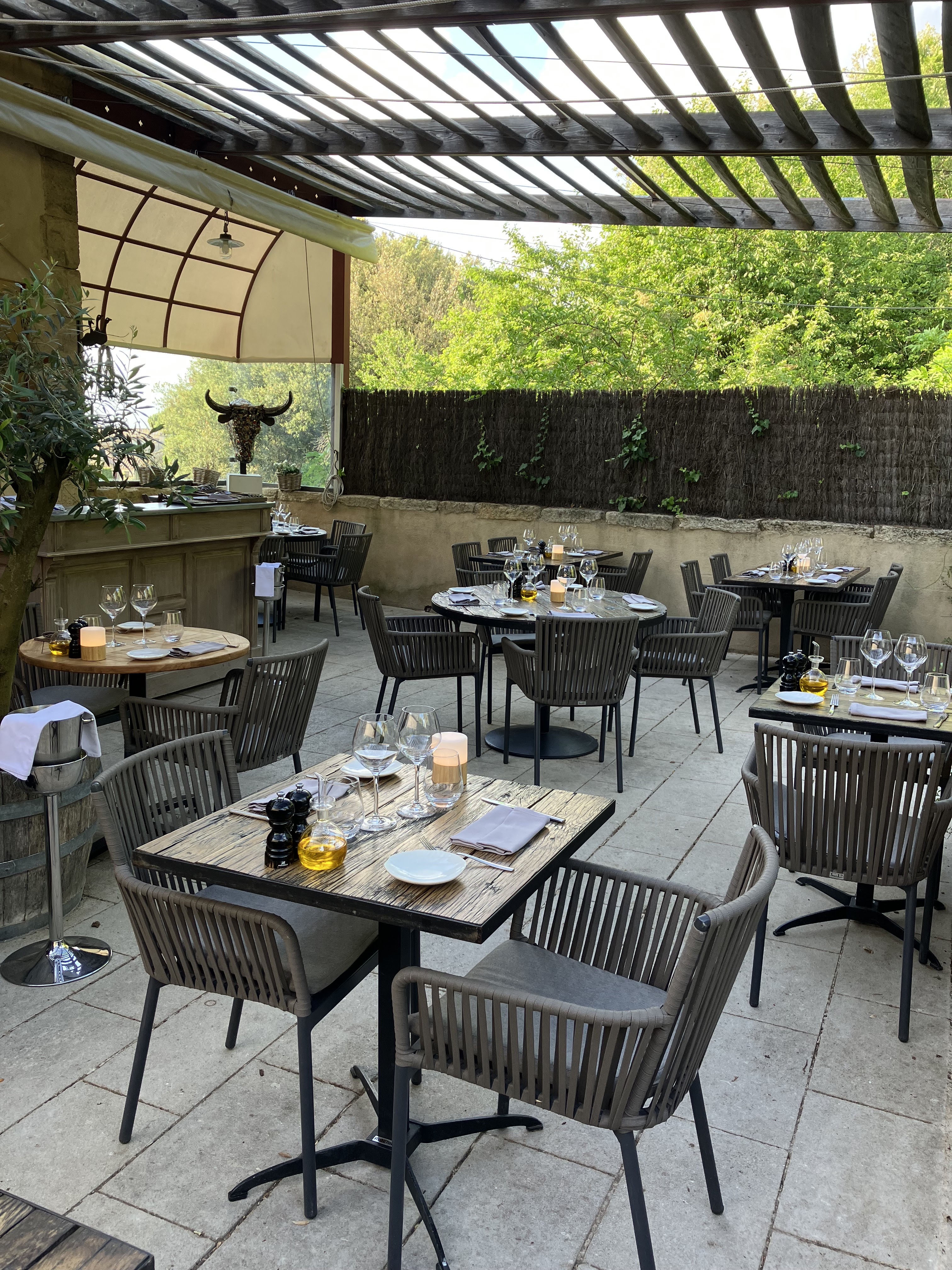 Bonjour En plein Luberon. Une terrasse à faire rêvé les voyageurs. Des repas excellents. On n'a plus envie de quiter ce lieu. Je recommande sans modération. Serge