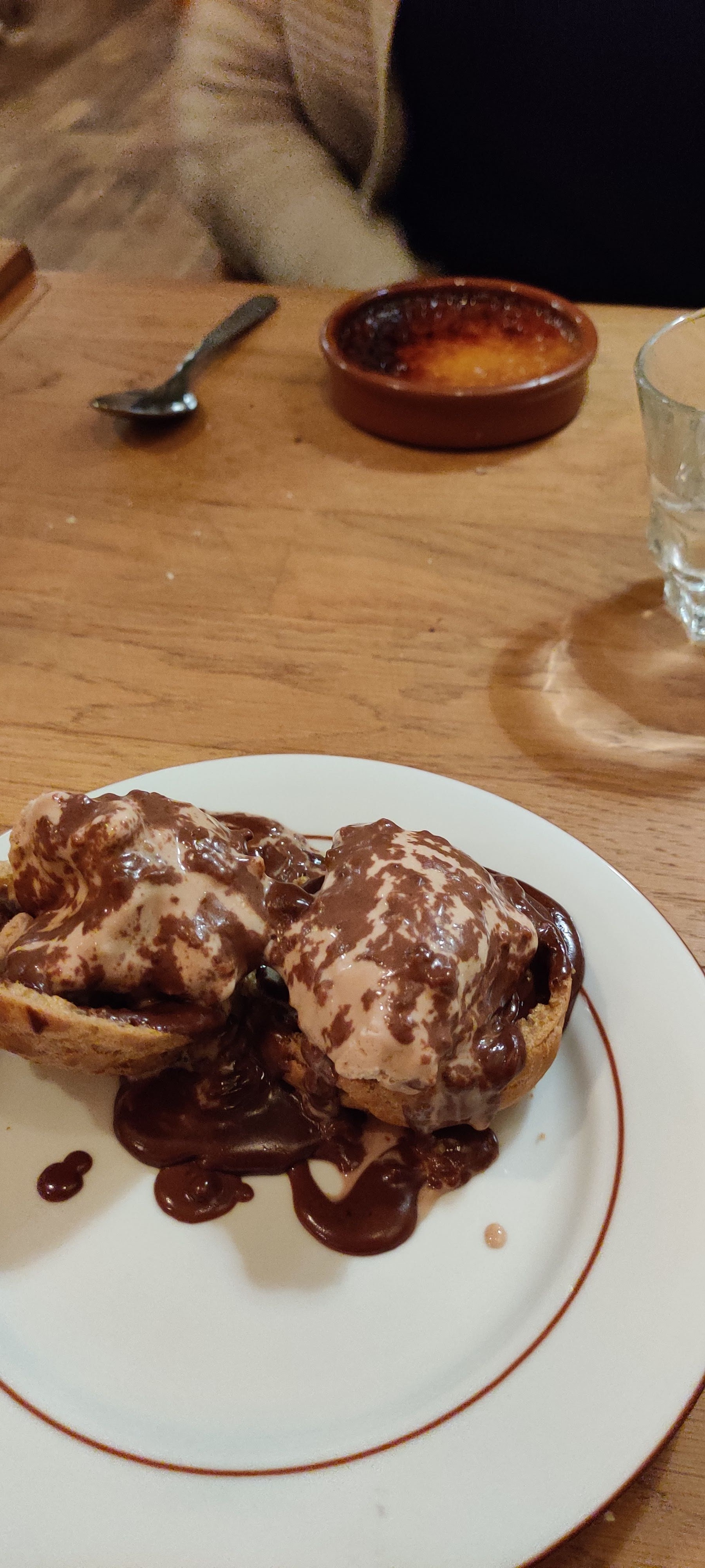 Cela faisait longtemps que je n’avais pas aussi bien dîné! foie gras, foie de veau et des profiteroles avec une sauce chocolat maison à tomber!