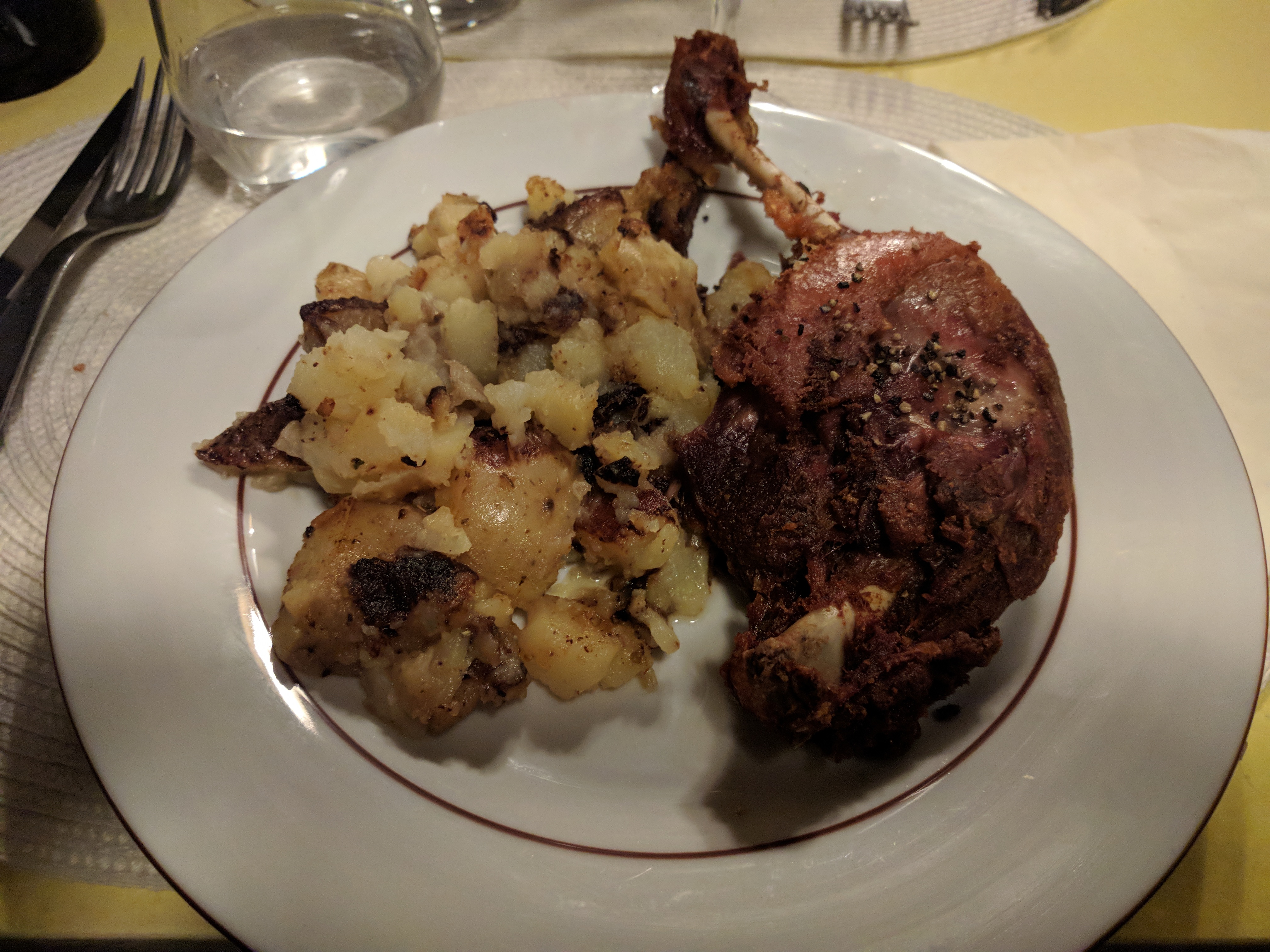 J'ai eu un repas absolument incroyable ici, avec une ambiance faite maison. C'est juste un homme qui fait tout, et il sait certainement cuisiner. Mon steak était cuit à la perfection, recouvert d'une sauce crémeuse au poivre. Seulement 17 euros pour un steak et pommes de terre, une salade au prosciutto et aubergines, et un expresso ! Certainement un voyage qui en vaut la peine.