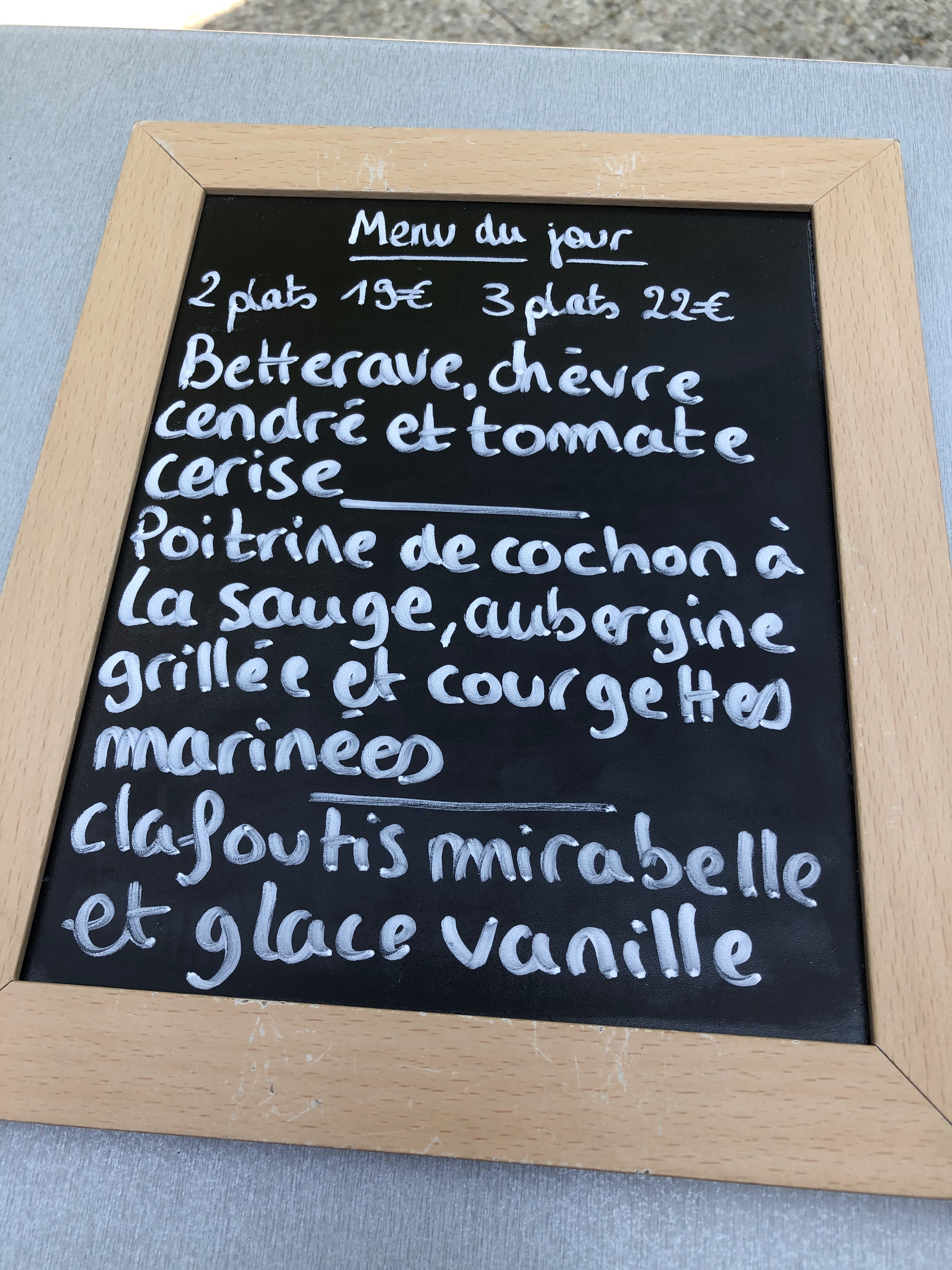 Nous avons adoré ce restaurant, particulièrement accueillant. Personnel jeune et dynamique, cadre très agréable près des ramparts. Ce jour là, nous avons choisi le gigot rôti aux petits légumes et une soupe de pêches. Avec un verre de vin local au verre, comptez environ 30€. Menu à 22€. Tous les plats sont garantis maison, produits régionaux. Excellent rapport qualité prix nous conseillons vivement