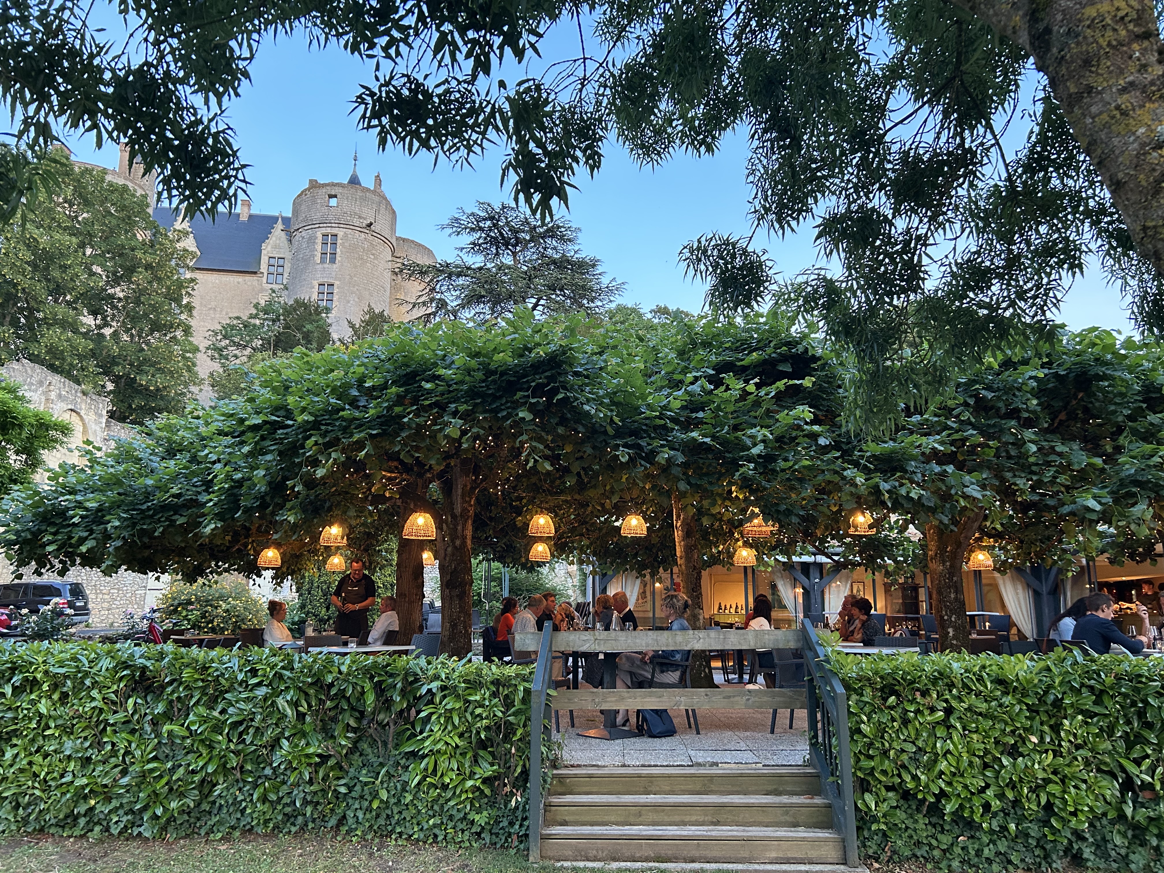 Dans un superbe cadre au bord de l'eau et au pied du château. Menu et repas de qualités avec des produits frais et de qualités. De gentilles attentions quand on a des enfants (menu enfants = menu adulte mais plus petit par exemple). Nous avons passé un agréable moment en famille grâce à la cuisine et aux serveurs. Bravo et merci.