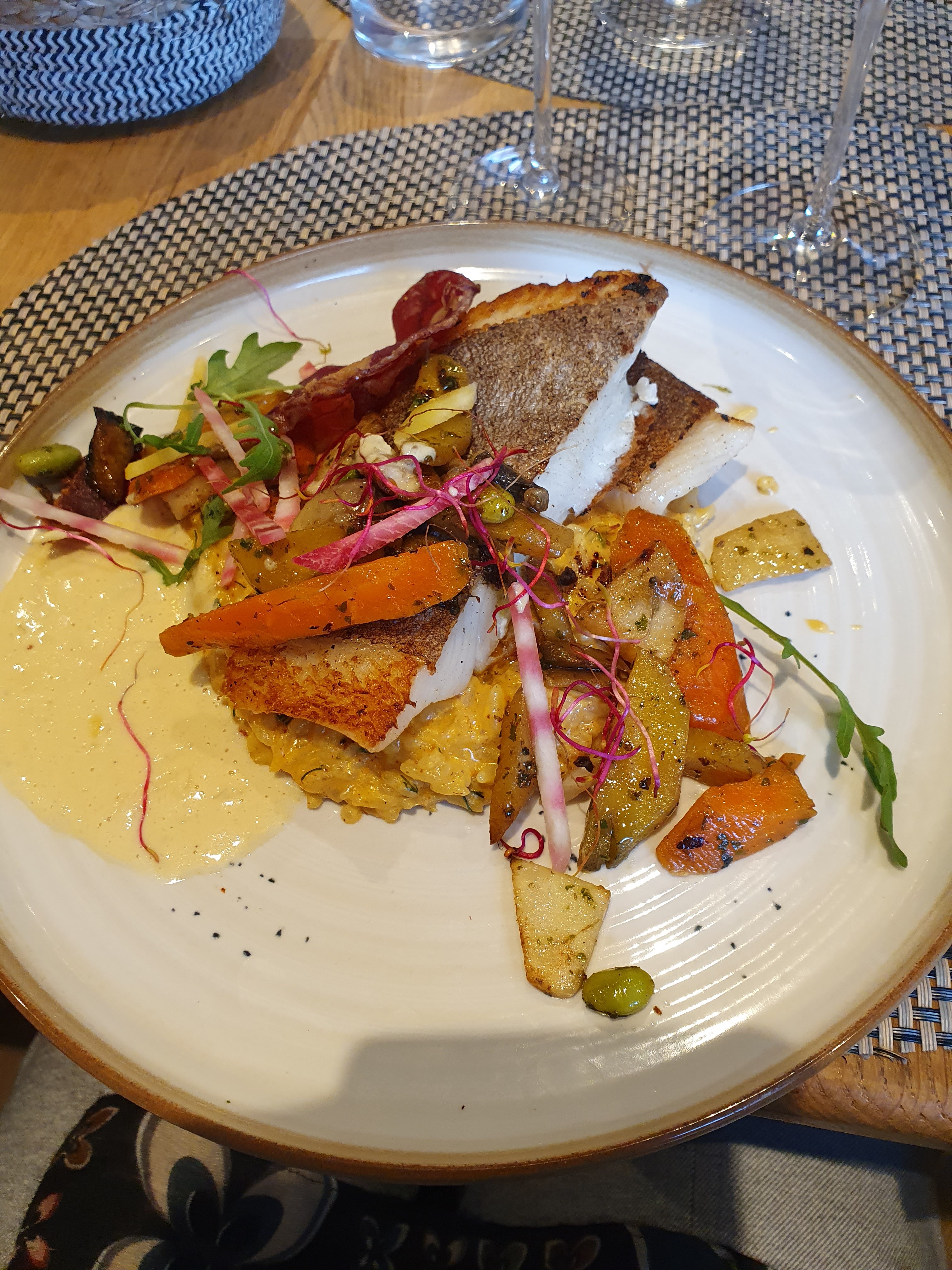 Malgré une très grande tablée, nous avons été servi quasiment tous en même temps. J'ai pris la daurade avec son risotto épicé et ses petits légumes. Et en dessert, la brioche façon pain perdu avec sa boule de glace noisette et son coulis chocolat blanc noisette. Le repas était très bon et les serveurs agréables. Je recommande.