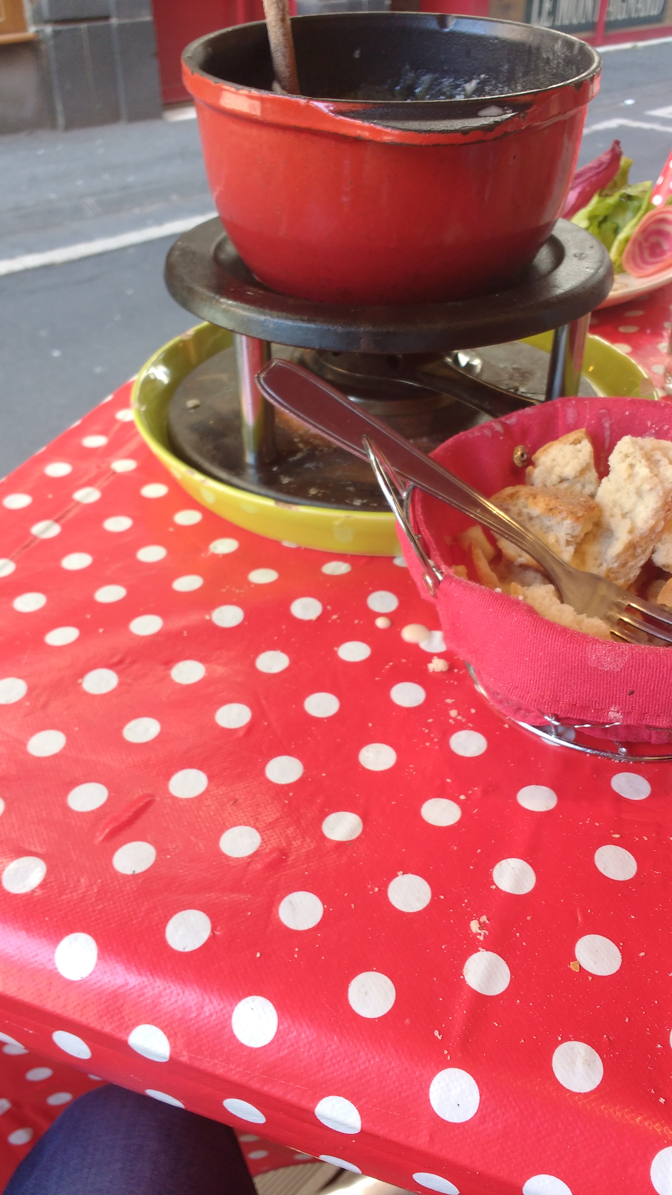 Patronne bruyante, grossière et fière de l'être, qui oublie que les gens ne viennent pas pour la voir en spectacle. Le reste du staff, des petits jeunes sympathiques, est bien plus pro. Nourriture excessivement chère au regard de ce que c'est en réalité : des pommes de terre, du fromage fondu, de la salade et du saucisson. La patronne est malheureusement représentative d'une tradition courante en France, où du personnel de service hostile a l'air scandalisé qu'on attende de lui de servir le client. Ambiance cosy plutôt réussie, même si les finitions sont bâclées (aux toilettes par exemple). À éviter, même si le manque d'alternatives rend la tâche compliquée.