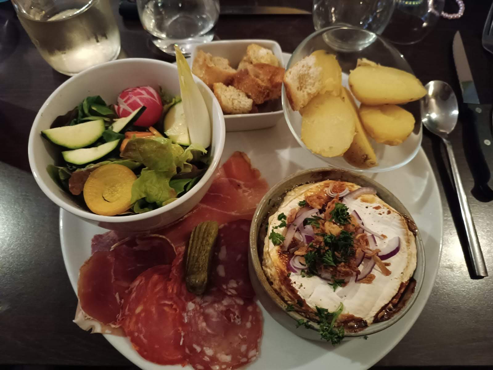Vraiment déçue, le plat est super basique et le fromage n'est pas de qualité. Le reste est simple charcuterie en barquette. Le vin rouge est vraiment mauvais. Le service n'est pas terrible non plus, mais vu le manque de personnel dans la restauration, je zappe cette partie. Bref, on a l'impression d'un attrape touriste, et pour le prix ça fait mal au....