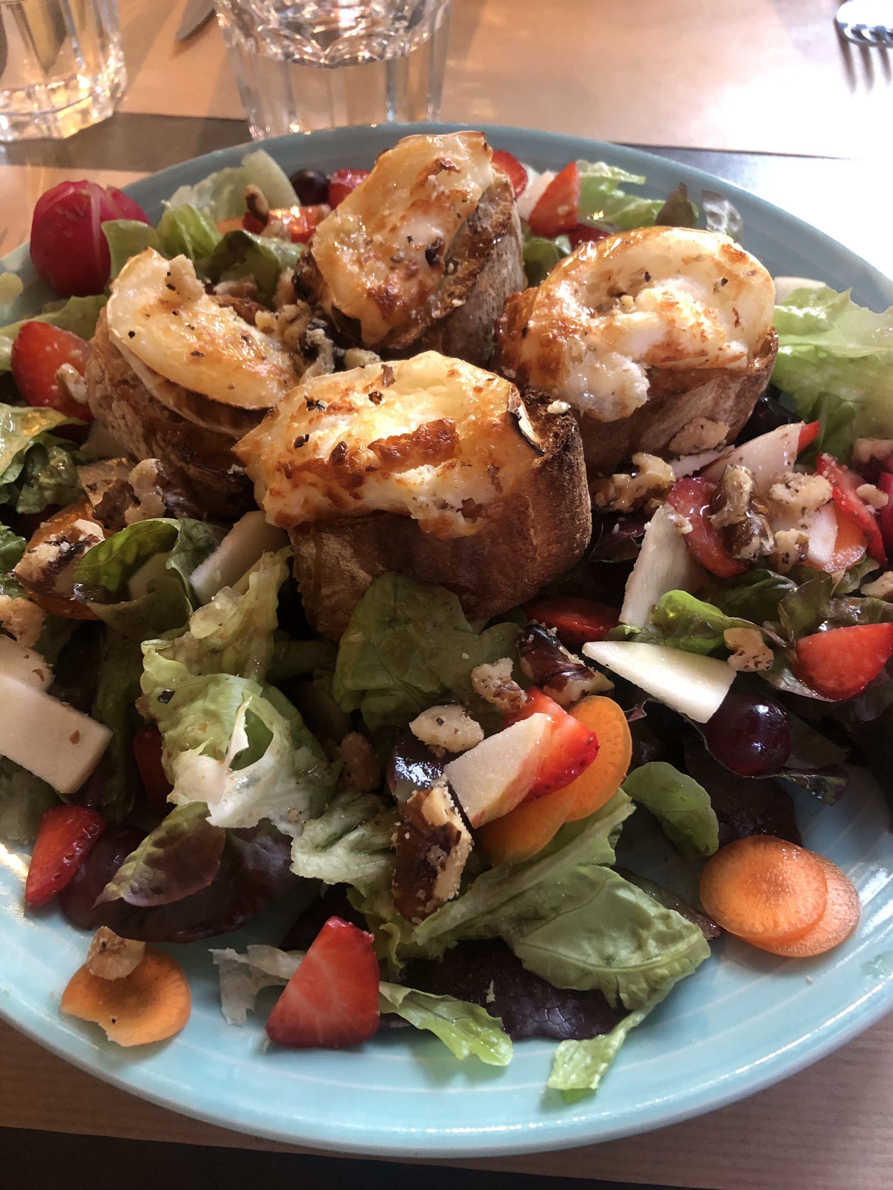 Une découverte pour cette salade de chèvre chaud revisitée façon L'Auberge des skieurs ! Adepte du sucré-salé, les fruits frais (fraises, cerises...) étaient les bienvenus dans cette assiette gourmande et généreuse. Mes compagnons de tables ont pris un camembert rôti, ils se sont également régalés ! Pour manger en extérieur c'est juste un peu compliqué, car les tables sont très serrées : la terrasse est très petite. Même le serveur présente des difficultés à circuler. Je recommande malgré tout ce restaurant et mets avec grand plaisir 5 ⭐️
