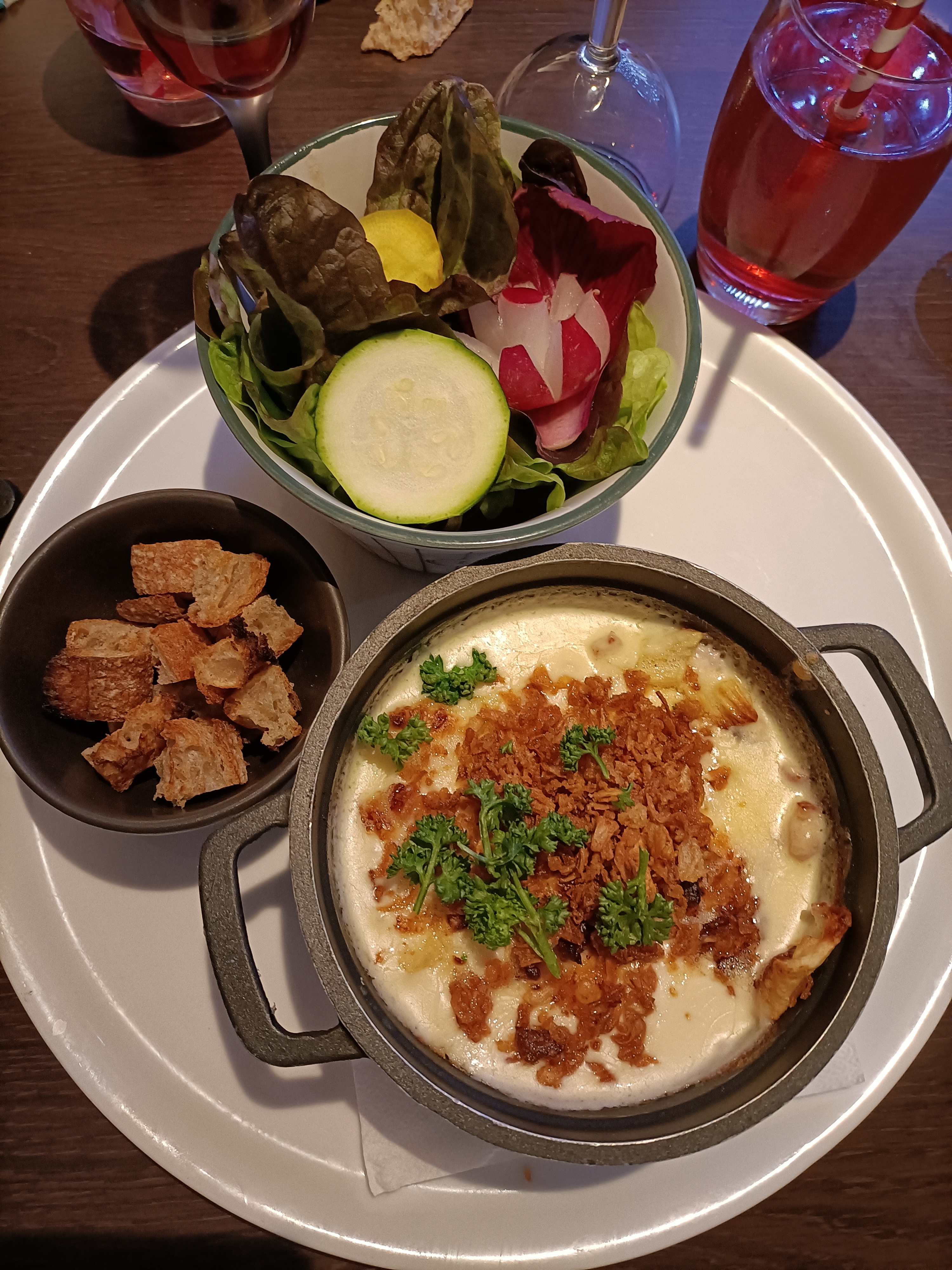 Assiettes pas nettes verres aussi truffade ordinaire charcuterie local avec du chorizo ! Service désorganisé cuisine ouverte sur la salle c'est bien mais nous ne sommes pas venus pour supporter les chamailleries de la cuisine avec l'équipe de la salle .