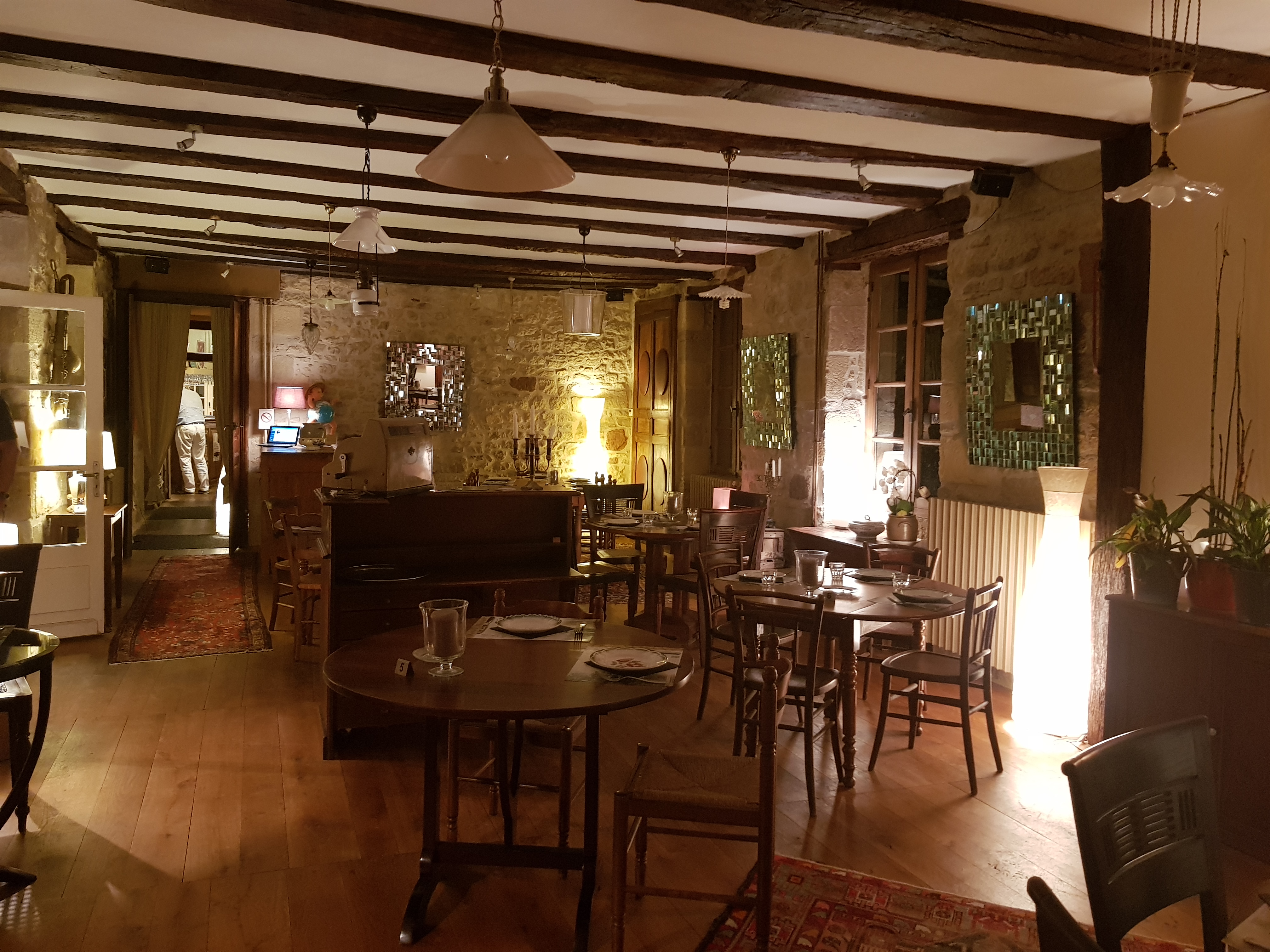 Nous sommes arrivés ici par une journée d'hiver extrêmement froide et pluvieuse alors que nous nous rendions à Hautefort. En entrant, nous nous sommes d'abord réchauffés au feu de bois qui brûlait dans le hall. Et même s'il était presque 14h00, nous avons trouvé une table dans la salle à manger. Le service était sympathique et le menu du jour comprenait de la soupe, les meilleures lentilles de tous les temps (je n'aurais jamais imaginé qu'elles pouvaient avoir bon goût) et du fromage/dessert. Un repas très copieux pour un prix très raisonnable dans un cadre cosy. Et nous avons appris quelque chose de cette expérience ; Quand vous avez faim dans la campagne française, regardez autour de vous où sont garés les camionnettes et les camions de chantier !