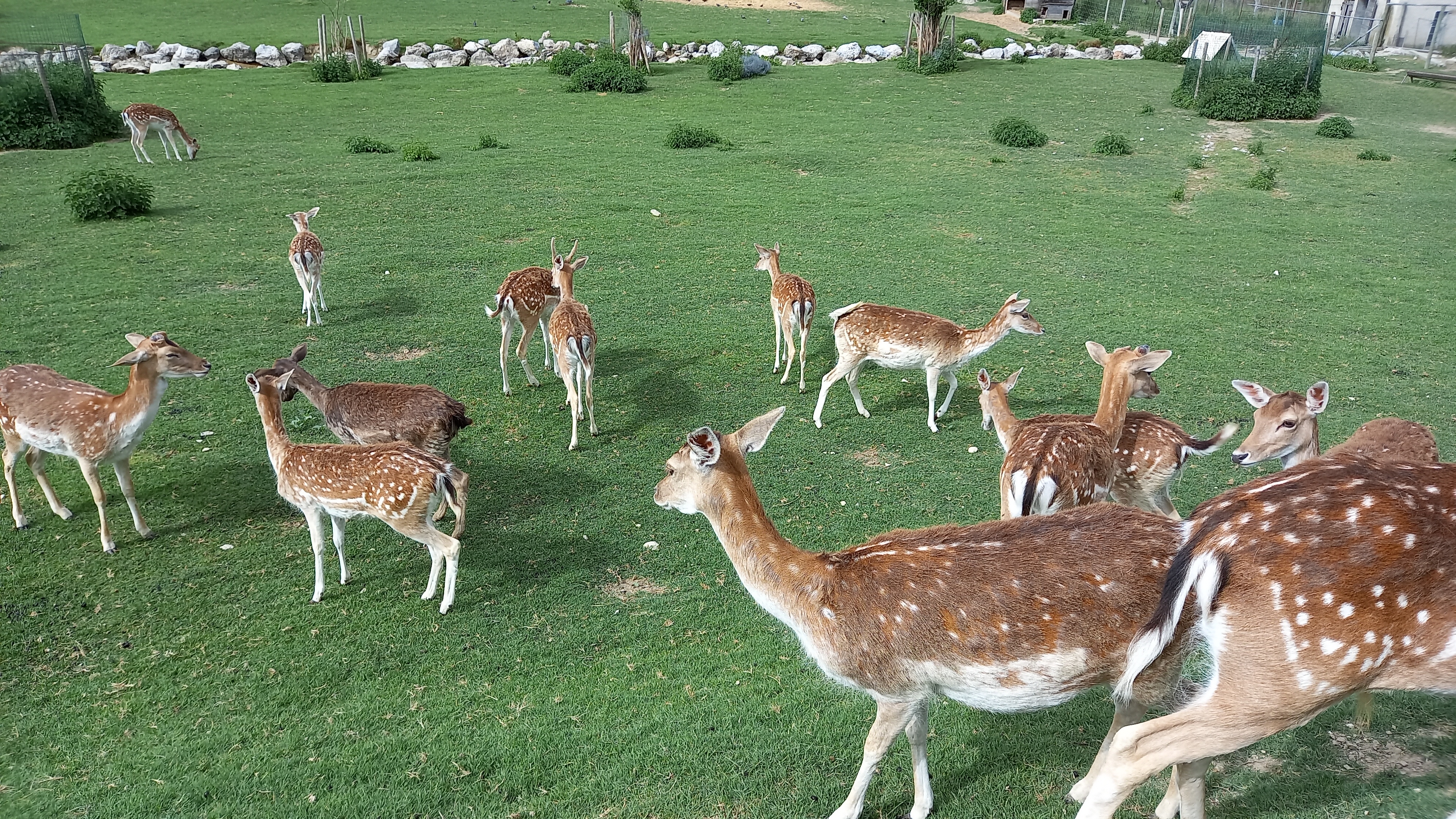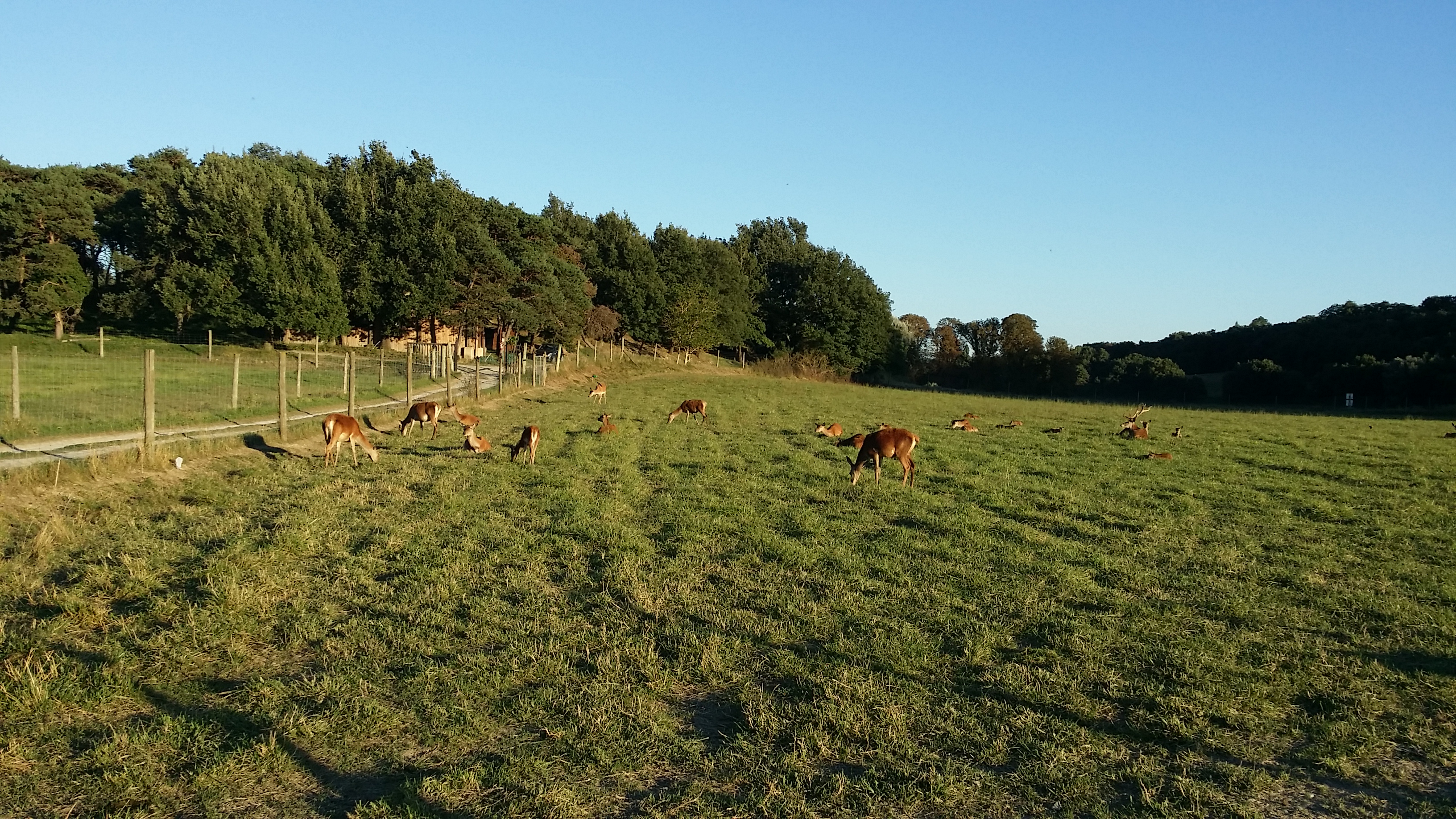 Nous avons passé une nuit au gîte. Une grande chambre avec salle de bain, correcte au vu du prix payé. D'autant que nous avons pu profiter de la piscine... Quant à l'auberge, nous avons mangé une excellente entrecôte forestière. Et puis, il y a les animaux : buffles, cerfs, daims, vaches, canards, poules, etc...